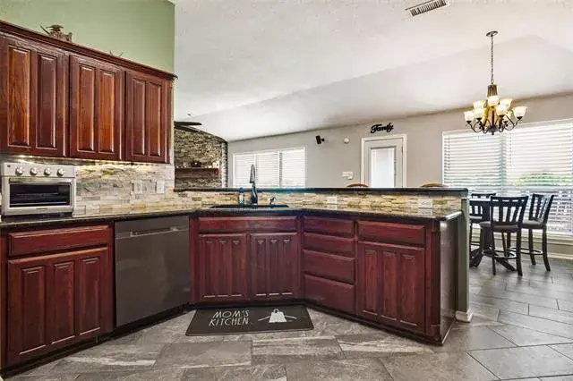 Step into this beautifully updated single-story home where style, comfort, and functionality come together seamlessly. From the moment you enter, you’ll be welcomed by an inviting open floor plan with a cozy living area centered around a stunning electric stone fireplace—perfect for both relaxation and entertaining. Enjoy new flooring throughout, plush carpeting in the bedrooms, and stylish updates such as modern doors, premium hardware, granite counter tops in the kitchen and sleek Kohler faucets, bringing a luxurious touch to every room. The home is wired for 32 speakers, offering an immersive sound experience ideal for music lovers and entertainers. The thoughtful split-bedroom layout offers privacy, with a spacious primary suite featuring a large walk-in closet and plenty of room to unwind. The oversized laundry room adds functionality with ample space and convenience. Recent upgrades, including new plumbing and a full property sprinkler system, provide added peace of mind. Step outside to your private backyard retreat, complete with a cedar privacy fence, partial astro turf for low-maintenance living, and a beautifully designed layout perfect for entertaining or relaxing in style. This move-in-ready home is packed with premium upgrades. Don’t miss your chance to make it yours!