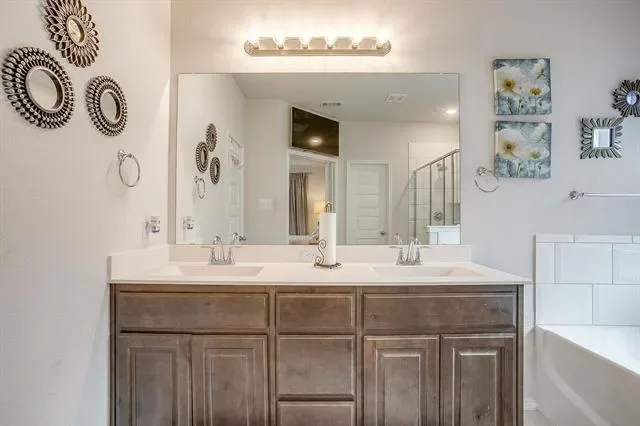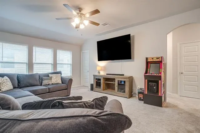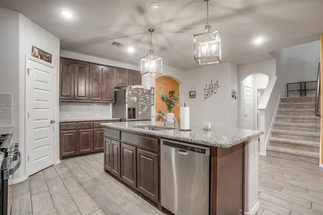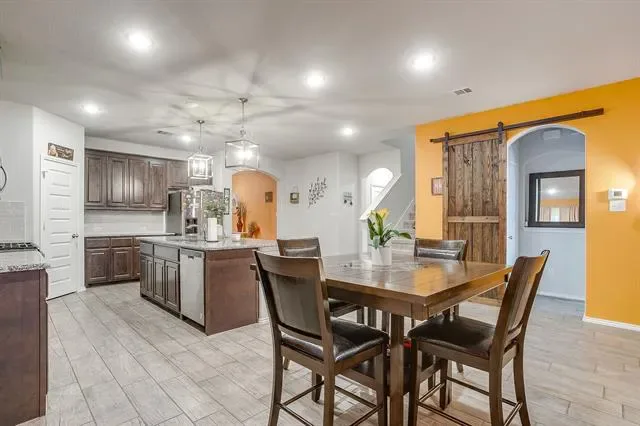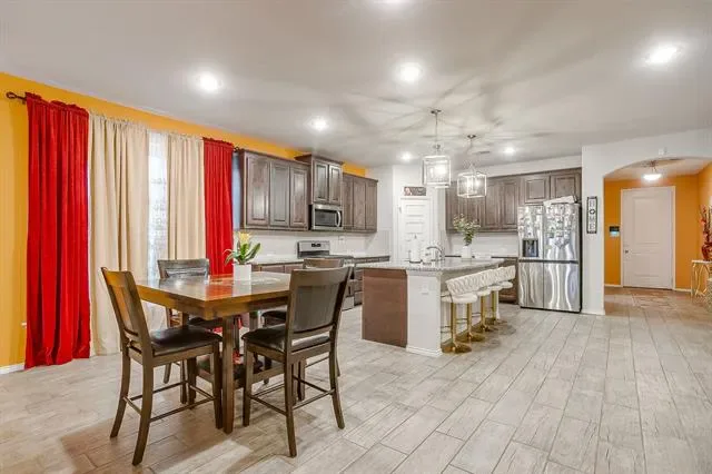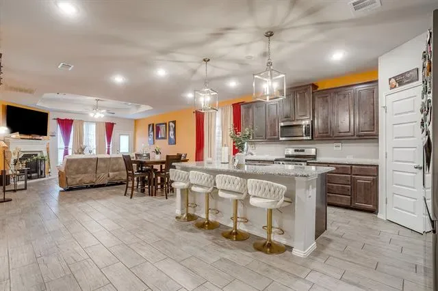 Stunning 5 bedroom home south of Fort Worth in the Crowley area. 3 full baths, 2 living areas, and lots of storage space. Open floor plan with high ceilings throughout. The kitchen features granite countertops, stainless steel appliances, gas stove, a big island, and lots of cabinet space. Walk in pantry too. Island with breakfast bar seating for 4. Great space for all your entertaining needs. Ensuite bath in master with separate tub and walk in shower. Walk in closet too! Double sinks in each bath. Beautiful backyard with covered and open patio space, firepit, and privacy. Community pool, playground, walking trails, sports courts, dog stations, soccer fields, and so much more! Easy access to schools, shopping, and restaurants.