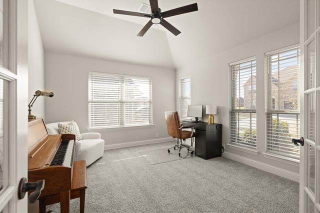 You will Fall in Love with this 4 Bedroom, 3 Full Bathroom Home known as the Hawthorne II. What makes it special is the open Living-Dining-Kitchen Area, 3 Split Bedrooms + 2 Full Bathrooms downstairs AND a true Study-Office upon entry. Wait…there’s more: Upstairs is a spacious Game room and the perfect set up for guests or kid zone featuring a bedroom and FULL bathroom. Bloomfield is known for custom touches such as the Austin Stone facade accenting this Multi Peak Elevation-stunning curb appeal. The 5 panel frosted glass front door adds to the already naturally Lit interior. Custom choices in materials continue into the kitchen:Shaker Style Maple Cabinets (under cab lighting), Granite counters, 4-Burner Gas range, SS Appliances and a bonus Butler area with more storage. Tons of prep space and a HUGE WALK IN PANTRY. The Austin Stone Gas Fireplace adds coziness & warmth to the spacious family room. Primary Bedroom from a TEXAS point of view describes just how expansive this room is. Spa like Primary bathroom features dual sinks, garden tub and separate seamless glass shower with seat. Back covered porch large enough for seating is a perfect spot to enjoy the fenced in private yard. Community offers a POOL & Clubhouse, Parks, & Walking-Biking trails. Prime Location just 6 Min from the Chisholm Trail Tollway and 20 Min from DWNTWN FT Worth. Tons of new restaurants and shopping nearby to enjoy. Do Not Miss Virtual Tour.
