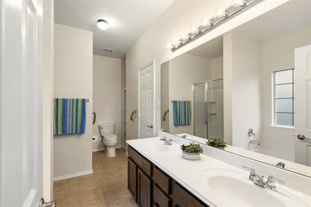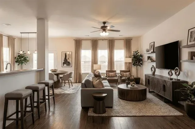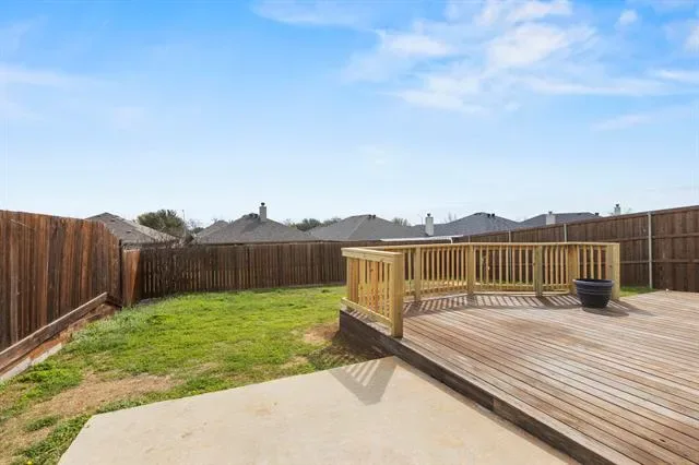 Fresh, stylish, and easy to love, this move-in ready single-story in sought-after BURLESON ISD delivers comfort, function, and value in one smart package. Nestled on a quiet interior street with no through traffic, the location offers a peaceful neighborhood feel while keeping you just 1.5 miles from the I-35 onramp for an easy commute. Inside, the open-concept layout creates a natural connection between the living, dining, and kitchen spaces, making everyday life feel effortless and entertaining feel easy. The kitchen is equipped with double ovens, a smooth cooktop, black and stainless appliances, built-in pantry storage, and a generous breakfast bar that keeps everyone connected to the heart of the home. The private primary retreat is thoughtfully separated and features dual sinks, a garden tub, separate shower, and spacious walk-in closet. Secondary bedrooms are tucked away from the main living areas for added privacy and flexibility. Practical upgrades add everyday convenience, including an 80-gallon water heater with recirculation system for abundant hot water, surprisingly generous storage throughout, and a dedicated bonus workspace perfect for hobbies, remote work, or organization. The garage features durable epoxy-finished floors for a polished look. Out back, enjoy a spacious yard with an elevated deck ready for grilling, outdoor dining, relaxing evenings, pets, playtime, or weekend gatherings. All-electric and energy-conscious, this home offers low-maintenance living close to shopping, dining, schools, and major commuter routes. Newly installed carpet in the primary and middle bedrooms adds a fresh finishing touch. A standout opportunity for first-time buyers, downsizers, or anyone seeking exceptional value.