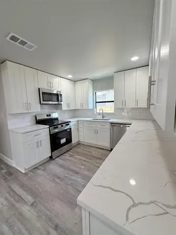 **Received Multiple offers**. Great starter home! This beautifully renovated home in the heart of Fort Worth, with easy access to major thoroughfares 35W, I-30, Hwy 287 & within minutes to downtown FW, is now ready for a new owner to enjoy tons of stylish updates. This gated home boasts a large front covered porch, 4BR, 2Baths, a massive family room, and a spacious dining area is perfect for family gatherings and entertainment. The gourmet kitchen features 42-inch brand-new cabinets, quartz countertops, a stainless stove, microwave, sink, dishwasher, garbage disposal, & kitchen fixtures. New ceiling fans in all bedrooms and new LED lights, easy maintenance, and allergy-free laminate wood floor throughout the house. The cozy master bath and the hallway bath have been updated with a modern touch, tiles all the way up to the ceiling, a new shower, new vanity cabinets, a mirror, and light fixtures. New windows, New HVAC units, new electrical panel, newly painted interior and exterior. The big backyard & side yard have a new fence. Both paved side yards can serve as a private open carport. The big backyard has room for expansion, if you wish to build another structure or perhaps storage. Don’t miss this almost brand-new, move-in-ready home for your family to enjoy.