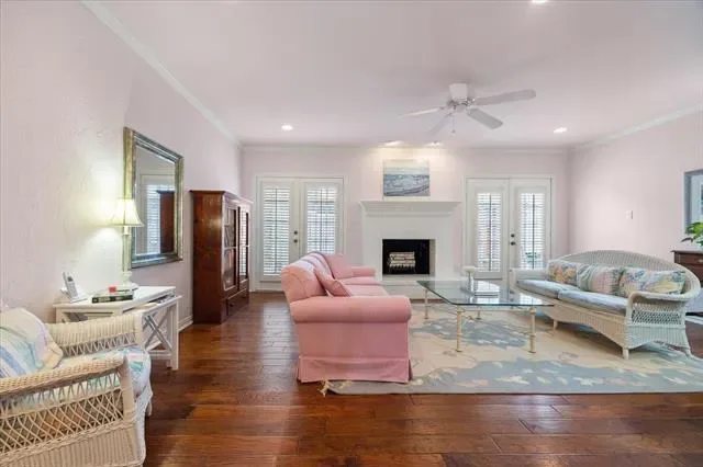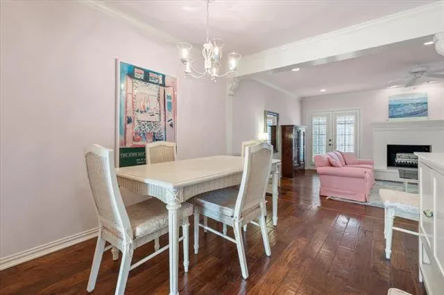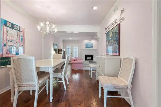 Rare opportunity to own one of only five two-story condominiums of this size in Indian Creek. This spacious residence offers a thoughtfully designed floor plan with all bedrooms located upstairs and generous living spaces throughout. The primary suite is a true retreat featuring its own fireplace, private patio with treetop views toward Westover, a separate dressing area, and a large walk-in closet. Downstairs showcases beautiful hardwood floors, crown molding, and expansive rooms including a study, powder bath, living room, dining area, and chef’s kitchen designed for both everyday living and entertaining. French doors open to an inviting 11×19 patio finished with brick pavers — perfect for outdoor dining or relaxing. Two dedicated parking spaces are conveniently located behind the unit. At the front of the home, residents enjoy a charming shared courtyard that provides a welcoming entry and peaceful common space. Homes of this size and two-story layout in Indian Creek rarely come available.