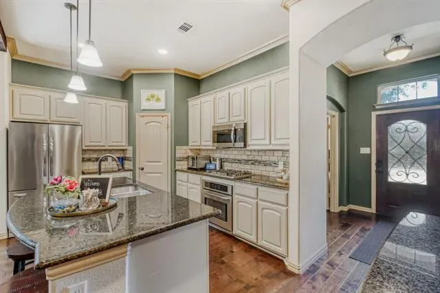 Welcome to this beautifully maintained one-story home in Fort Worth, where comfort, style, function and standout outdoor living come together. Built in 2017 and cared for by its original owners, this home features hardwood flooring throughout the main living areas and carpet in the bedrooms, creating a warm, cohesive flow. As you enter the house, you are immediately met by a home office-study for privacy, then as you move into the main living area with an open layout centering around a kitchen with a large island, pantry, and custom dry bar with cabinetry and shelving, seamlessly connecting to the living room anchored by a cozy fireplace. The primary suite is privately positioned at the rear of the home, while secondary bedrooms are well-sized and thoughtfully placed. A spacious laundry room adds convenience, and solar panels enhance energy efficiency and long-term value. Outside, the backyard is the true highlight, a covered patio opens to a built-in BBQ, in-ground pool with hot tub, and water features, all within a fenced, private setting designed for relaxation and entertaining. Located in a desirable Fort Worth community, residents benefit from HOA maintained common areas, nearby parks, and walking paths that support an active lifestyle. The area offers quick access to major highways including US 287 and Loop 820, making commutes throughout the metro straightforward. Everyday conveniences are close at hand with nearby shopping, dining, and entertainment, along with access to schools in Eagle Mountain Saginaw Independent School District. This home delivers a rare combination of indoor comfort and outdoor retreat in a location that keeps you connected to everything. Homes with all the upgrades and amenities like this one don’t stay available for long. Schedule your tour today and experience it for yourself.