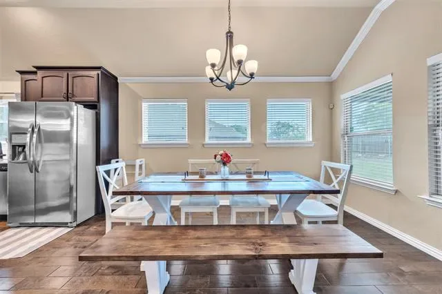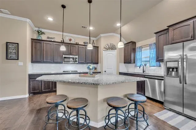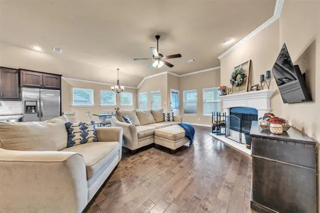 Welcome to your dream one-story home! This stunning 3-bedroom, 2-bath residence offers over 2,100 square feet of beautifully designed living space on an oversized lot. Complete with a dedicated office or flex space, this one-story gem boasts gleaming wood-engineered flooring, plush carpeted bedrooms, and a spacious kitchen with a huge oversized island, granite counters, and a subway backsplash. Cozy up by the fireplace in the open living area, and relax in the expansive primary suite, featuring beautiful bay windows and a massive walk-in master shower with a ledge. The home also includes a dedicated laundry room, mudroom, and ceiling fans in every bedroom. Energy efficiency abounds with spray foam insulation in the attic, temperature-controlled for comfort year-round. Outside, enjoy the oversized lot with an extended back patio, perfect for entertaining, plus raised garden beds for your green thumb. Behind the home, it backs up to a serene green space, offering privacy and tranquility. With a sprinkler system to keep the yard lush, this home is truly a rare find. The HOA is highly regarded, creating a vibrant, welcoming neighborhood community. Schedule your private tour today!