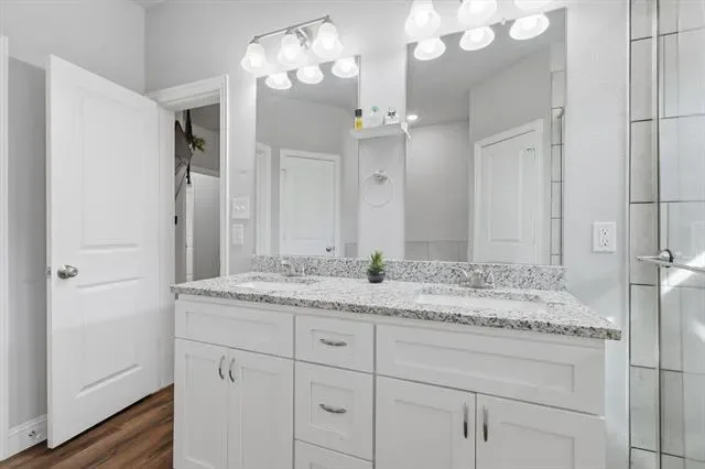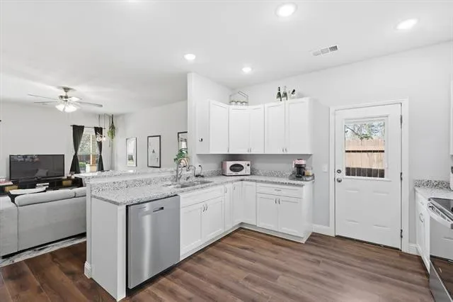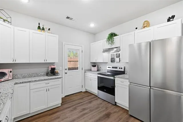 Beautiful one-story home, barely lived in, featuring 3 spacious bedrooms, 2 full baths, and a 2-car attached garage, situated on a quiet cul-de-sac. This practically brand-new home offers a large open floor plan filled with abundant natural light throughout. Enjoy expansive front and back yards, along with large covered front and back porches—perfect for relaxing or entertaining. The private backyard provides a peaceful retreat, with convenient access from both the kitchen and the primary suite. Inside, you’ll find luxury vinyl flooring throughout most of the home, with carpet in two bedrooms. The kitchen is a standout, offering an abundance of custom cabinetry, a huge walk-in pantry, and direct access to the backyard. A generously sized utility room adds extra convenience. All bedrooms are oversized and include walk-in closets. The primary suite is exceptionally large and features a private door to the backyard. The luxurious primary bath includes dual sinks with granite countertops, a separate bathtub and shower, a linen area, and two large walk-in closets. With its all-brick exterior, spacious design, and ideal location offering easy access to schools and highways, this home truly has it all. A must-see with so many wonderful features!