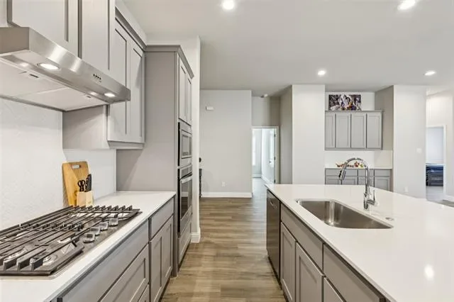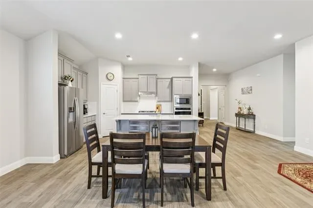 Once inside, you’re welcomed by an inviting, light-filled living and dining area that flows effortlessly into the kitchen—ideal for entertaining with its open, airy layout that still feels warm and welcoming. The magazine-worthy kitchen truly has that wow factor, showcasing stainless steel appliances, recessed lighting, a walk-in pantry, white quartz countertops, and on-trend wood-look flooring that complements any décor. Whirlpool refrigerator and washer-dryer appliances are negotiable.