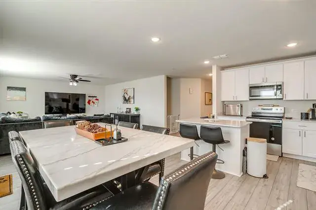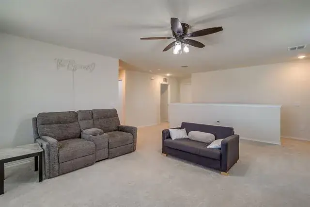 **PROPERTY ALSO LISTED FOR RENT FOR $2950!!** GREAT STARTER HOME conveniently located within the fast-growing area of north Crowley! The elevation plan for this two story home has great curb appeal with a neutral brick, stone entrance and herringbone brick pattern accents. Once you walk through the entryway, there is a front bedroom and full bathroom to your left with the staircase on your right before it opens to the common areas. The front bedroom could be utilized as a home office and the bathroom would be your guest bath. You’ll love this spacious open concept between the kitchen, living and dining room. The kitchen is classic with white cabinetry, hardware, quartz countertops, stainless steel appliances and a kitchen island for additional prep space. There’s room for EVERYONE in this home with 4 bedrooms, 3 full bathrooms and a second living area upstairs. The primary bedroom is located upstairs and on the same floor as the laundry room. The primary bedroom has dual sinks, a glass stand up shower and great size closet! The backyard is spacious and has a concrete pad off the back patio door for seating or grilling. Owner installed an EV plug in the garage and a whole home surge protector built into the panel along with additional protectors on the outdoor and indoor HVAC units! We also did some research of businesses in the area that we think would be worth checking out such as Chisolm Trail Park, Conundrum Farms near Benbrook Lake, Bicentennial Park with splash pads, playgrounds and trails through Deer Creek. Also, the recently built Tarleton State Fort Worth campus is just 10 minutes away. COME TAKE A LOOK!
