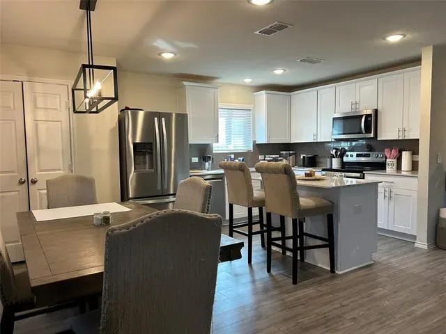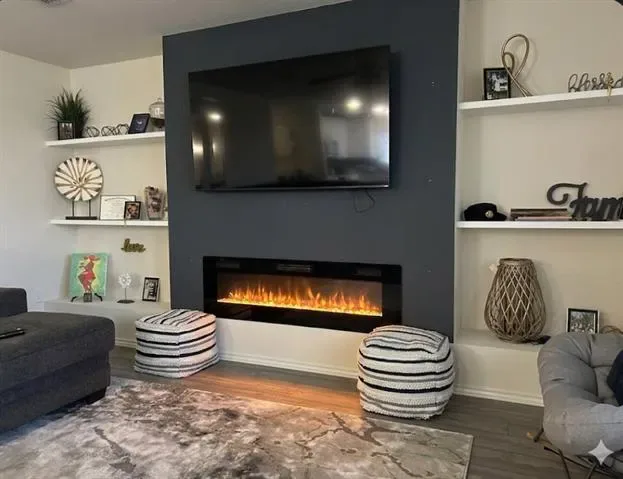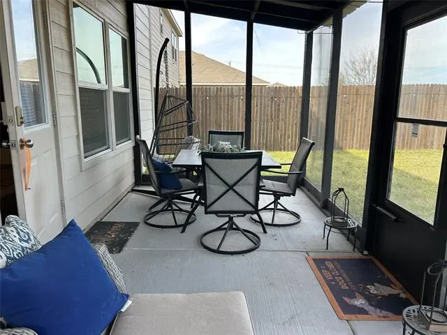 Welcome to this beautifully designed 4-bedroom, 3 full-bath residence offering style, comfort, and a highly functional layout. The inviting open-concept floor plan features gorgeous wood-like laminate flooring that flows seamlessly through the main living areas, creating a warm and elegant atmosphere. The living room is highlighted by a stunning electric fireplace, providing the perfect focal point for relaxing evenings or entertaining guests. The thoughtfully designed floor plan includes a guest bedroom on the first floor with a full bathroom conveniently located just outside the door, ideal for visitors or multigenerational living. Upstairs, the home continues to impress with a spacious primary suite retreat, offering privacy and comfort. The laundry room is conveniently located on the second level, making everyday living easier. The second floor also features a large second living area or game room, perfect for a media space, playroom, or additional lounge area. Two additional bedrooms are located upstairs as well, offering plenty of space for family or guests. Step outside to enjoy the beautiful screened-in enclosed back patio, an ideal place to relax with morning coffee or unwind in the evening while enjoying the outdoors year-round. With its open layout, versatile living spaces, and inviting outdoor retreat, this home offers the perfect blend of modern comfort and everyday functionality.