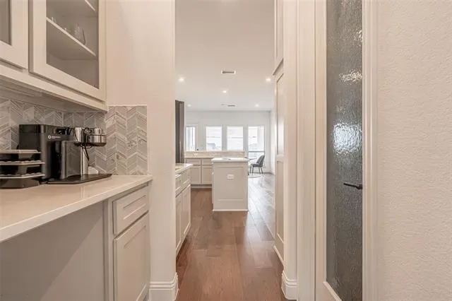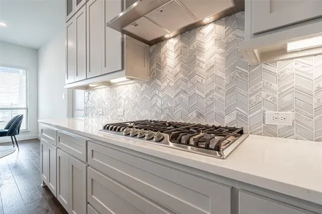 The kitchen serves as the heart of the home showcasing modern design, an open layout, and seamless flow to the breakfast nook and spacious living room with a cozy fireplace. Host memorable gatherings in the formal dining room or stay productive in the private office. The main-floor primary suite offers a tranquil retreat complete with an en-suite bathroom featuring dual sinks, a jacuzzi tub, a separate shower, and a generous walk-in closet. Upstairs the possibilities are endless with an expansive game room along with a dedicated media room featuring a built-in wet bar. The Texas-sized bedrooms upstairs all include walk-in closets and two of them share a convenient Jack-and-Jill bathroom with separate dual sink areas. Step outside to the covered patio and fully fenced backyard an ideal setting for relaxing summer evenings. Located just moments from Eagle Mountain Lake you’ll enjoy convenient access to boating, fishing, swimming and countless outdoor adventures. La Frontera offers exceptional amenities including walking trails, picnic areas, parks, and a splash pad. Plus, the home’s prime location provides easy access to major highways, shopping, dining, and top-rated schools. This home offers the perfect blend of luxury and practicality and includes numerous upgrades such as stainless steel appliances, luxury tile and carpet, upgraded kitchen cabinetry and countertops, a jacuzzi tub in the primary bath, built-in surround sound, 2-inch faux blinds throughout, a grand two-story entry with iron stair railing, double front doors, a partial circular driveway, a fully built-out media room, and so much more. Hardly lived in and meticulously maintained this exceptional home is move in ready!