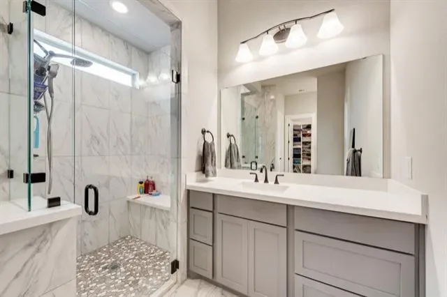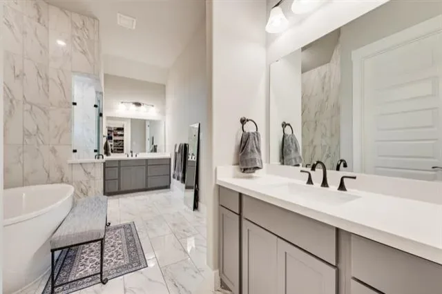 Modern Elegance &' Masterful Craftsmanship – Step into a world of sophisticated design with this stunning 2-bedroom plus office, 2.5-bathroom residence. Every detail of this home has been meticulously curated, offering a better than new feel that seamlessly blends luxury with everyday functionality. Architectural Detail &' Living Spaces – The open-concept floor plan is anchored by soaring ceilings and magnificent custom ceiling beams that add a sense of warmth and grandeur to the main living area. For those who work from home, the dedicated private office offers a quiet, professional sanctuary tucked away from the main flow of the house. Chef’s Dream Kitchen – The heart of the home is a true masterpiece. Featuring custom kitchen cabinetry that provides both elegance and ample storage, the space is beautifully complemented by pristine, high-end quartz countertops. Whether you’re hosting a dinner party or enjoying a quiet morning coffee, this kitchen is as functional as it is beautiful. Spa-Inspired Retreats – Relaxation is redefined in the primary suite. The ensuite bathroom is a designer showstopper, featuring a walk-in shower with floor-to-ceiling marble-inspired tiling, a custom pebble-stone floor, and a built-in bench. Throughout the home, you''ll find 2.5 beautifully appointed bathrooms with modern fixtures, integrated quartz sinks, and premium contemporary finishes. Key Property Highlights: Versatile Layout: 2 spacious bedrooms plus a private office. Premium Finishes: Custom beams, designer lighting, and high-end hardware. Gourmet Excellence: Custom cabinets and durable quartz surfaces. Turn-Key Luxury: Meticulously maintained with a crisp, neutral color palette throughout. This property is a rare find that combines timeless architectural interest with the most sought-after modern conveniences.
