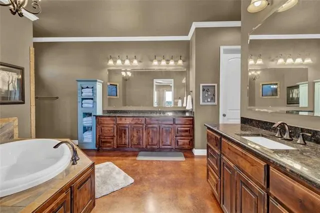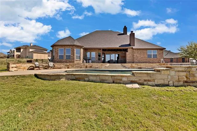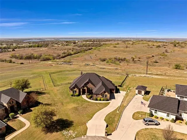 **ASSUMABLE VA LOAN for Veteran** Perched on a hilltop in the gated community of Lago Vista at Bonds Ranch, this beautiful one-story home offers the perfect blend of peaceful country living and modern convenience. Situated on over a full acre, the property boasts sweeping views, a sparkling pool, and an oversized covered patio—ideal for relaxing or entertaining. Inside, the open-concept layout is filled with natural light and anchored by a spacious living room featuring a cozy fireplace and stunning backyard views. The kitchen flows seamlessly into the living and dining areas and is well-appointed with granite countertops, a large island with breakfast bar, walk-in pantry, and built-in microwave. The thoughtfully designed split floor plan includes 4 bedrooms and 3 full bathrooms. The private primary suite offers a spa-like retreat with dual vanities, a soaking tub, separate shower, and a generous walk-in closet. The additional bedrooms are perfect for guests or multigenerational living—which share a full bath. The 3-car oversized garage and extended driveway provide ample space, including room for a boat. This home is loaded with upgrades and long-term value, including a TDI Impact Resistant Class 3 roof with transferable warranty, piered foundation and piered pool, spray foam insulation, and full Cat 5 wiring available to be set up for in-home sound and intercom system. Enjoy the best of both worlds—quiet, scenic living just minutes from Eagle Mountain Lake and the new Eagle Mountain High School, with easy access to major conveniences. Located just 25 minutes from downtown Fort Worth, 35 minutes from DFW Airport, and only 10 miles from Alliance Town Center with premier shopping, dining, and entertainment. Community amenities include gated access, fishing ponds, playgrounds, swimming pools, and walking trails. This is a rare opportunity to enjoy space, privacy, and high-end features—all within close proximity to the city.