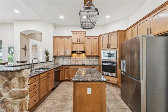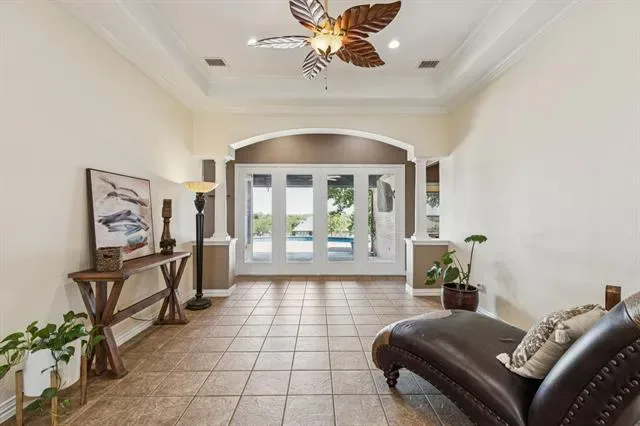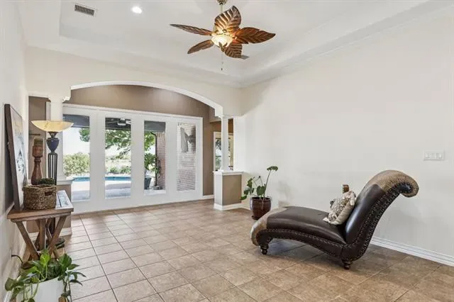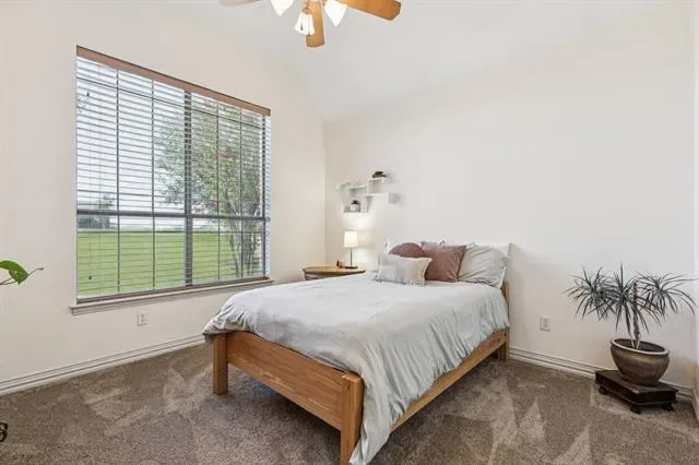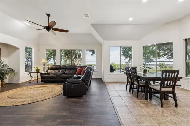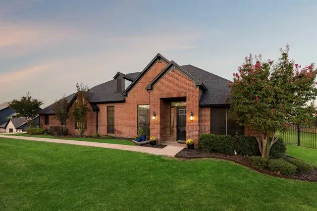 Perched on a hilltop in the gated community of Lago Vista at Bonds Ranch, this beautifully updated one-story home offers peaceful living with unbeatable access to modern conveniences. Just minutes from the brand-new Eagle Mountain High School and scenic Eagle Mountain Lake, this property combines serene surroundings with everyday ease. Set on a full acre, the home features a sparkling pool, an oversized covered patio perfect for entertaining, and sweeping views of the surrounding area. Inside, the open-concept layout is filled with natural light and anchored by a spacious living room with a cozy fireplace overlooking the backyard. The kitchen opens seamlessly to the living and dining areas and is equipped with granite countertops, an island with breakfast bar, walk-in pantry, and built-in microwave. The thoughtful split floor plan includes 4 bedrooms, 3 full bathrooms, and a 3-car garage with an oversized driveway large enough to park your boat. The private primary suite boasts a large walk-in closet, dual vanities, soaking tub, and separate shower. A secondary bedroom offers an en suite bath—ideal for guests or multigenerational living—while the remaining two bedrooms share another full bathroom. Recent upgrades (May 2025) include new interior and exterior paint, updated lighting and plumbing fixtures, a new roof, refreshed landscaping, improved fencing, and a deeper-set waterline. Enjoy the best of both worlds: tranquil living just 5 minutes from the lake, 25 minutes to downtown Fort Worth, 35 minutes to DFW Airport, and only 10 miles from the shopping, dining, and entertainment options at Alliance Town Center—including Costco and more. Community amenities include gated access, fishing ponds, playgrounds, swimming pools, and walking trails. Don’t miss your chance to enjoy the quiet of the countryside without sacrificing city convenience.