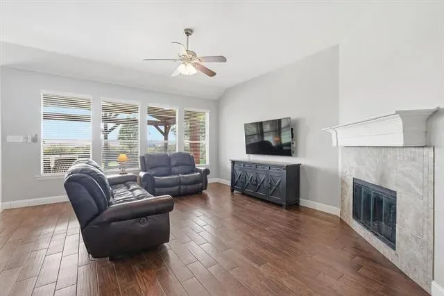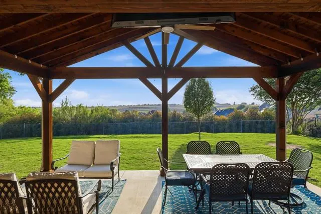 HILLTOP VIEWS! Huge covered patio with beautiful views. If you’re tired of cookie cutter lots this just over a quarter acre yard is the one for you. Sellers say the stars at night are amazing. In addition to the patio the covered front porch is just as nice! For those that like relaxing outside in the shade this is the perfect home. Inside features plank tile floors throughout much of the home. Big open kitchen. 4 bedrooms plus an office. The HOA also includes access to a community pool. Eagle Mountain Park is a short drive away and features some of the best hiking in North Texas.