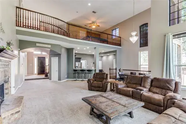 Welcome to this spacious multi level home in Lake Country Estates, located just minutes from Eagle Mountain Lake. The main floor includes the kitchen, dining, and living areas with abundant natural light from the wall of windows along the back of the home. Enjoy the view from all the windows as you back up to a greenbelt. Also on the main level are the primary bedroom with ensuite bath, a secondary bedroom with private full bath, dedicated office, powder room, laundry & garage access. Upstairs offers a large open lofted area overlooking the living room with a wet bar. The lower level features two additional bedrooms, a bathroom, and a game or flex room. The lower level also has two doors with direct access outside to the pool & firepit area. This home offers generous indoor & outdoor living space for growing families or multi generational living in a well established neighborhood.