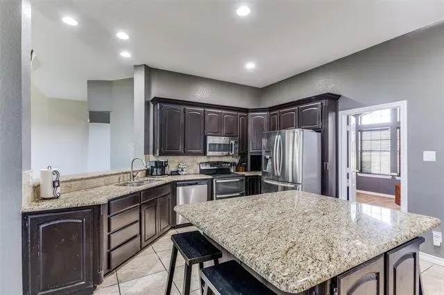 Welcome to this spacious multi level home in Lake Country Estates, located just minutes from Eagle Mountain Lake. The main floor includes the kitchen, dining, and living areas with abundant natural light from the wall of windows along the back of the home. Enjoy the view from all the windows as you back up to a greenbelt. Also on the main level are the primary bedroom with ensuite bath, a secondary bedroom with private full bath, dedicated office, powder room, laundry & garage access. Upstairs offers a large open lofted area overlooking the living room with a wet bar. The lower level features two additional bedrooms, a bathroom, and a game or flex room. The lower level also has two doors with direct access outside to the pool & firepit area. This home offers generous indoor & outdoor living space for growing families or multi generational living in a well established neighborhood.