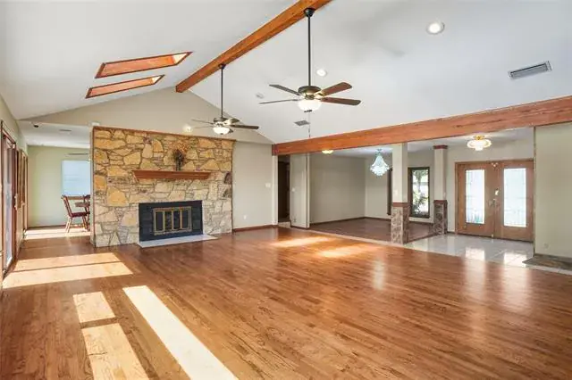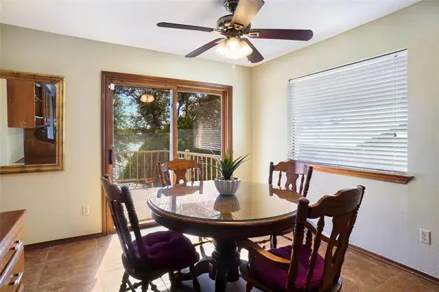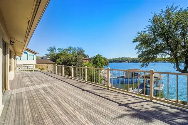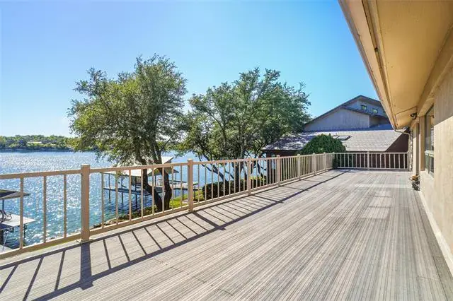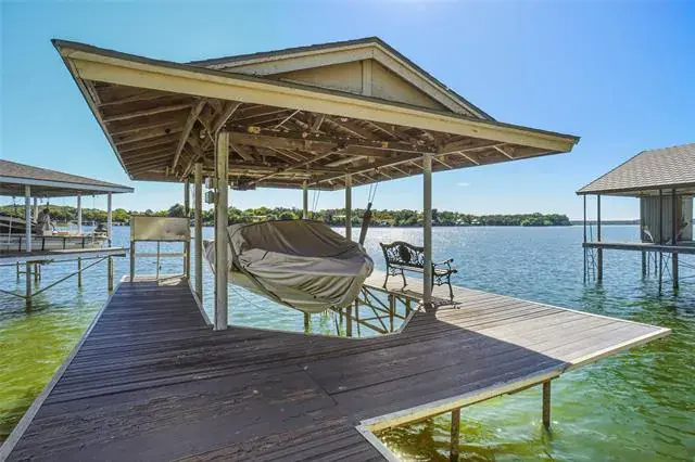 Eagle Mountain waterfront living Fort Worth style. Charming two story home has a perfect blend of comfort and captivating views. At the first level you will find the primary suite what awakens you with sparkling water scenery from sunup to sundown. Primary bath includes an updated shower and garden tub. Each primary has their own vanity and individual closets. Second bedroom on the first level with full bath that offers double vanities and lots of storage. The first level living area gives you stunning lake views. Whether you are cooking or dining you get to enjoy the same outstanding views. As you enter downstairs you find a large game room with a fireplace and a wall of shelves for your favorite team memorabilia. The waterfront views are just as perfect downstairs! Every single space down has the Eagle Mt view. Bonus room can be a craft room, workout room or office with additional oversized storage closet. Oversized three car garage with ample parking on the circle drive. Flagstone entry and back patio that leads to the covered boat dock. Drop your boat in for a cruise or fish off the dock. Enjoy the wildlife, owls, cardinals, robins, the occasional bald eagle, and so many waterfowl. Open water that sits perfectly at the no wake zone. Enjoy July 4th fireworks & parade. Sliding back patio doors on each level. Lake life is a great life !