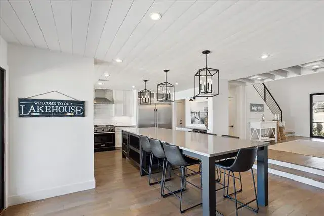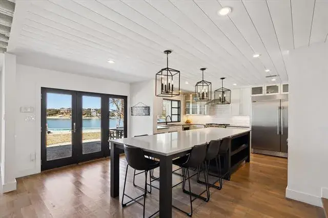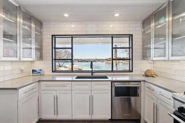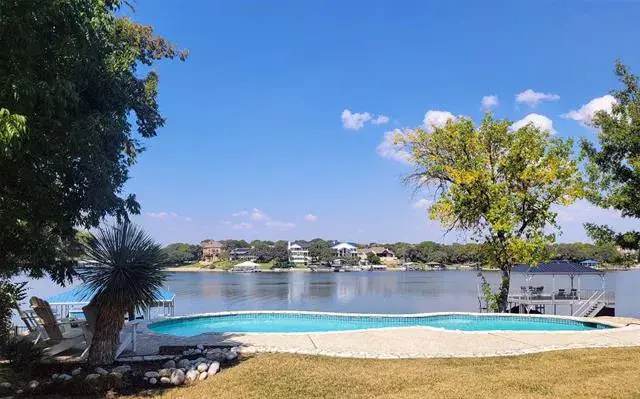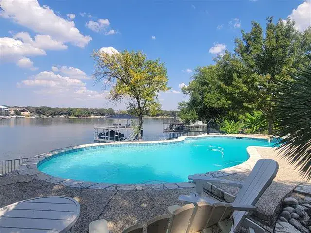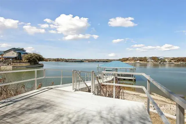 Exceptional waterfront home with contemporary design set against the stunning backdrop of Eagle Mountain Lake. Nestled in the prestigious Lake Country community. The seamless flow between living, dining and kitchen areas enhances the home’s spacious feel. Featuring white oak flooring throughout home that adds warmth and elegance. Four spacious bedrooms and three full bathrooms accommodate family and guest with ease. A downstairs bedroom and living area offer the flexibility of a private mother in law suite. The gourmet kitchen is equipped with quartz countertops, solid maple cabinetry, a built in refrigerator, a propane cooktop, a wine refrigerator, and a large center island that seats six. Upstairs you will find an airy loft space, bathed in natural light. The primary bedroom complete with large ensuite bathroom offering a stylish modern tub and double shower. Two additional bedrooms that share access to a convenient Jack and Jill bathroom. All upstairs bedrooms have access to a spacious balcony overlooking the lake, the wonderful diving pool, and the resort style backyard, creating a perfect place to relax and unwind. Home also offers 175 ft of waterfront, a gazebo and a new covered boat dock with lift that gives you private access to deep water, perfect for boating and water sports! Rare opportunity to own a piece of paradise on EAGLE MOUNTAIN LAKE! Don’t miss your chance to experience lakefront luxury at its best!