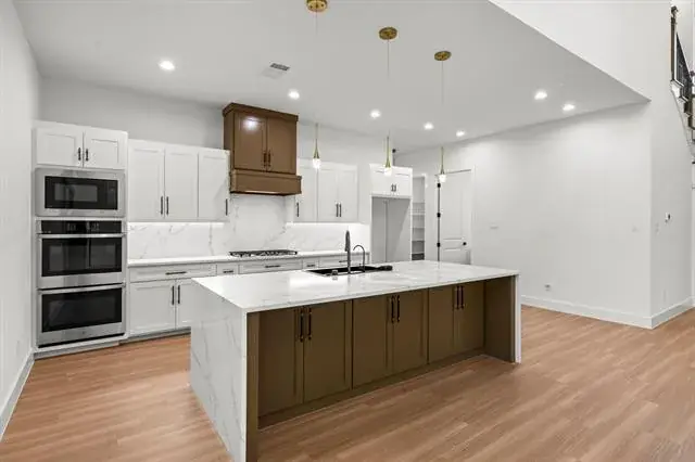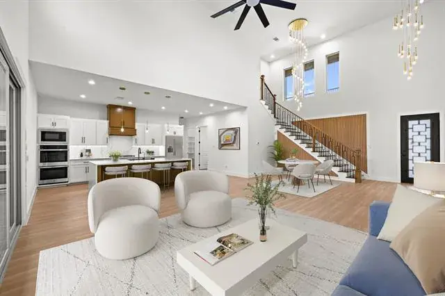 Lake living at its finest! Nestled across the street from the tranquil waters of Eagle Mountain Lake, this beautiful new construction home is move-in ready with exquisite finishes throughout. Step inside to be greeted by vaulted ceilings, creating a grand entrance with eye-catching cascading chandeliers. The desirable open floorplan allows for seamless living from kitchen to dining to living. The heart of the home is the gourmet kitchen, featuring luxurious waterfall quartz countertops, large kitchen island with a high end sink workstation, double ovens, and a 5-burner gas cooktop. Huge pantry room is located next to the separate laundry room, both offering multiple shelves for storage and organizing. Downstairs not only features a luxurious primary suite with a jaw dropping bathroom and huge closet, but also a guest suite – the most desirable floorplan. While upstairs features a large open gameroom with a long balcony for doing sunset, and 3 bedrooms, plus a large guest bathroom with gorgeous tile work. From the downstairs slider doors, enjoy a large covered patio facing East, creating additional shade for those backyard BBQs. Enjoy the community''s rich amenities, including access to the gated private boat ramp – boat launch located just a few steps at the end of the street, fishing docks, parks, and green belts, all part of a voluntary HOA. Embrace the serene lifestyle with easy lake access (just down the road) and the comfort and efficiency of a brand-new home. Don’t miss this opportunity to own a piece of paradise at Eagle Mountain Lake!