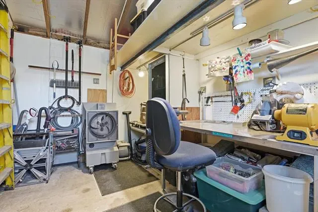 The master bath is a luxurious retreat featuring dual sinks, a garden tub, and a separate shower. For hobbyists, there is a separate 12 x 10 workshop, fully finished and insulated with power and air conditioning.