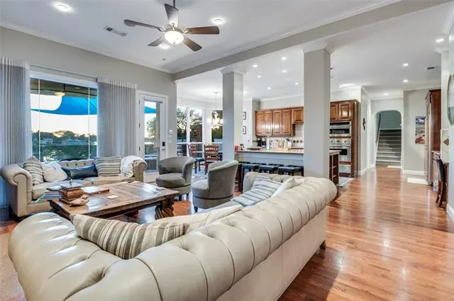 Stunning 5,275 SF waterfront home on Eagle Mountain Lake, perfectly positioned in a quiet cove with deep water and a premium multi-slip dock featuring motorized boat and jet ski lifts. This property delivers the full lake-lifestyle package with an incredible resort-style pool, luxurious interior finishes, and a floor plan designed for both everyday comfort and effortless entertaining. The home offers generous living spaces, multiple gathering areas, and well-appointed upgrades throughout. Outdoors, the lake-facing patio, pool, and easy walk-down to the dock create a true private retreat. A rare opportunity to own a beautifully updated luxury lake home with direct water access, strong recreational features, and outstanding views.