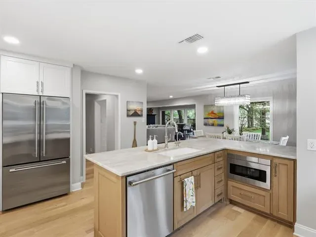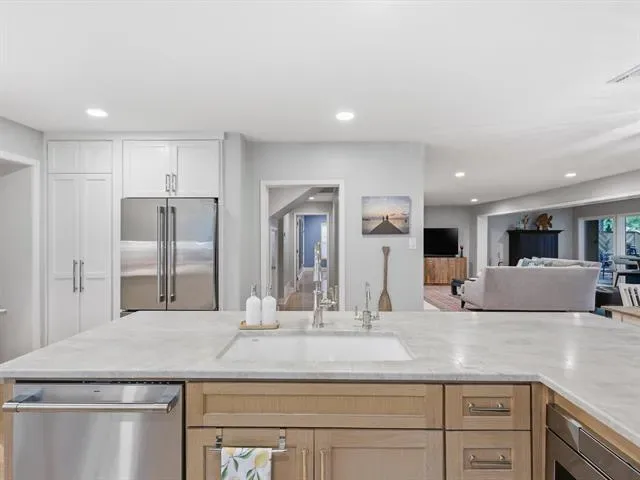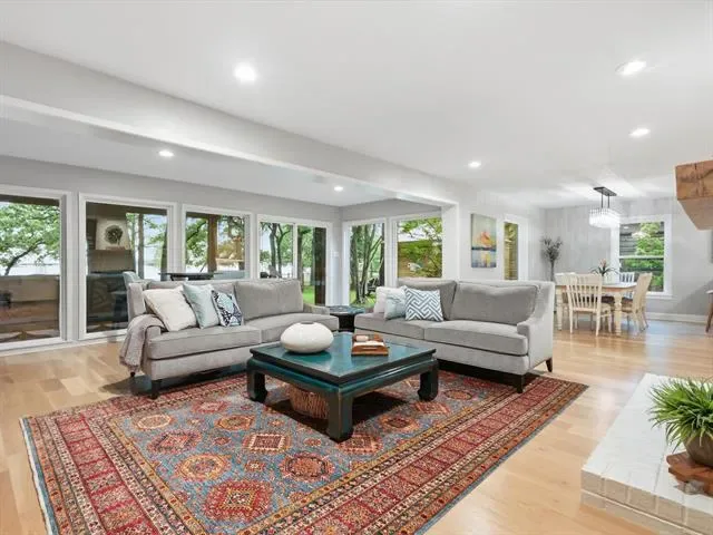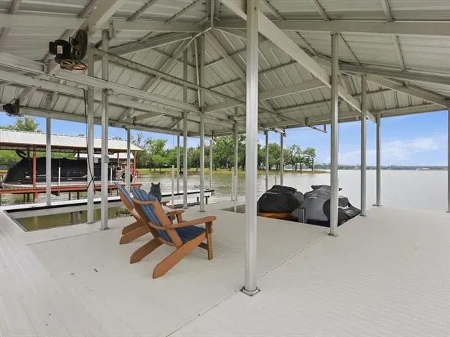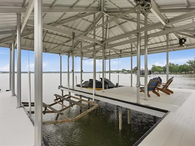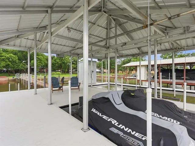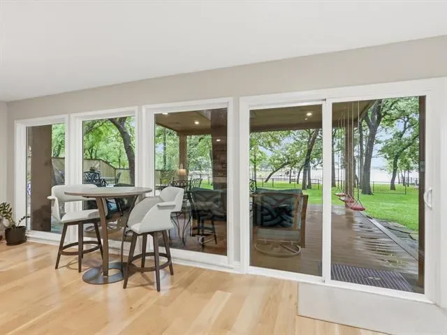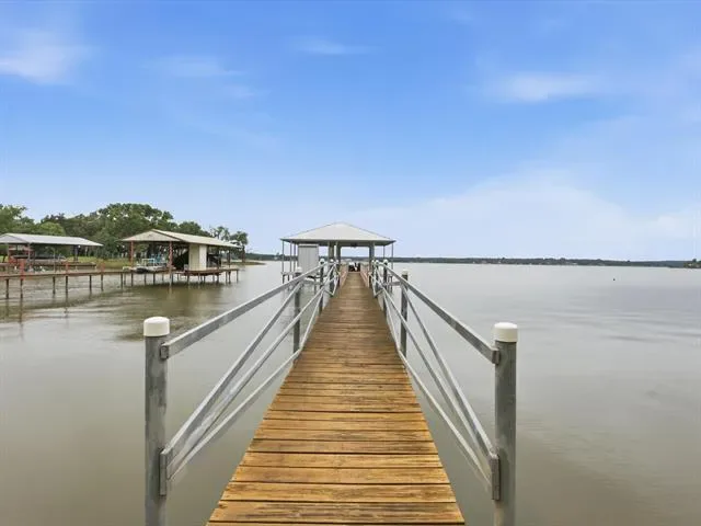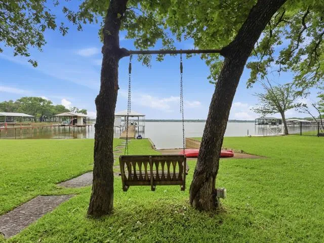 Experience refined lakefront living on a breathtaking, heavily treed private acre along the shores of Eagle Mountain Lake. Tucked behind a private drive, this exceptional property offers unmatched privacy, serene natural surroundings, and sweeping water views from nearly every vantage point. Completely reimagined with sophisticated, high-end finishes, this 3,340-square-foot residence seamlessly blends modern elegance with everyday comfort. Open-concept design features a grand living area anchored by a fireplace and walls of windows that capture the picturesque lake views, creating a seamless transition between indoor and outdoor living. At the heart of the home is the completely remodeled gourmet kitchen, showcasing stunning leathered granite countertops, a premium Wolf range, walk-in pantry, and an oversized breakfast bar—perfect for casual dining and entertaining. Thoughtfully designed for both comfort and flexibility, the home offers four bedrooms, including two primary suites on the main level—ideal for multigenerational living or hosting guests with ease. Upstairs, you’ll find two additional bedrooms, a full bath, a versatile flex space, and game room—perfect for entertainment and relaxation. Step outside to your private outdoor retreat, where a spacious covered deck and fully equipped outdoor kitchen set the stage for unforgettable gatherings. Relax in the hot tub, unwind in the charming swing seating, and take in the tranquil waterfront setting. Designed for the ultimate lake lifestyle, the property features a private boat dock with lift, dual jet ski lifts, and a dedicated ramp for effortless access to kayaking and paddleboarding. Three-car garage, additional parking, and a basketball area provide ample space for recreation and guests. Renovated with energy efficiency in mind, this move-in-ready home offers a rare blend of luxury, functionality, and tranquility. Waterfront retreat—perfect for creating unforgettable moments with family and friends.