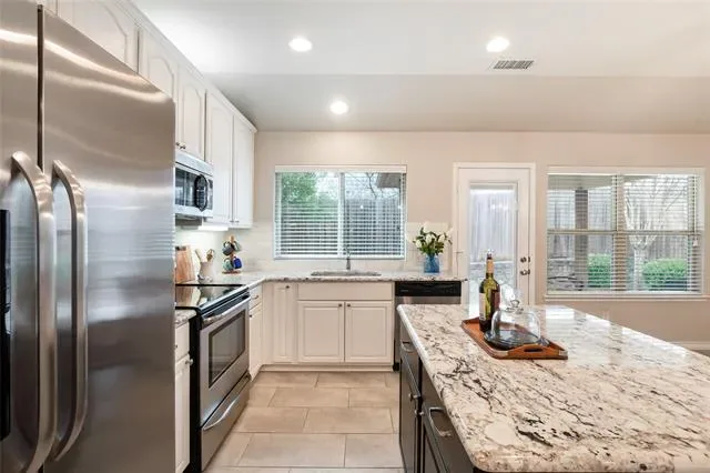 CHARMING HOME NESTLED IN A QUIET NEIGHBORHOOD ON A PEACEFUL CUL-DE-SAC! Move-In-Ready and designed with comfort and functionality in mind, the one-story, open floor plan is perfect for both everyday living and entertaining, featuring granite countertops, a center island, and ample dining space for gathering. Upgraded handscraped hardwood flooring adds warmth and character throughout the main living areas. A versatile flex room or great room with French doors offers numerous possibilities – ideal for home office, playroom, or additional living space. The primary suite is truly a retreat, highlighted by elegant bay windows that fill the room with natural light. The master bath is well appointed with dual sinks, soaking tub, separate shower, and a spacious walk-in closet. Enjoy the convenience and energy efficiency of a smart thermostat designed to to enhance comfort while keeping utility costs low. Outside, a low-maintenance yard provides just the right amount of outdoor space to relax under the covered patio. An added bonus is the washer, dryer, and refrigerator are negotiable! This inviting home combines privacy, flexibility, and modern living in a serene setting with the luxury of being close to Lake Worth and excellent access to downtown Fort Worth, shopping, dining, and all that North Texas has to offer. Schedule a tour to come see for yourself! This house was in coming soon status and just became active on MLS March 5, 2026.