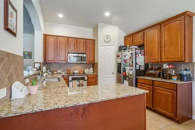 Welcome to this beautifully maintained brick home tucked away in a quaint neighborhood near Lake Worth, offering the perfect blend of comfort and convenience with easy access to I-820 and endless options for shopping and dining. Step inside the inviting foyer and you’re greeted by a cozy living room centered around a charming wood-burning fireplace. The open-concept kitchen and dining area flow seamlessly into the living space, making it ideal for both everyday living and entertaining. Just off the living room, a private office with elegant French doors provides the perfect work-from-home setup. Out back, a covered patio creates a relaxing space to grill, unwind, or enjoy your morning coffee. The spacious primary suite is filled with natural light and features a well-appointed bathroom with a double vanity, walk-in shower, separate soaking tub, and a generous walk-in closet. This inviting home combines thoughtful layout, warm finishes, and a desirable location. Come see everything it has to offer.
