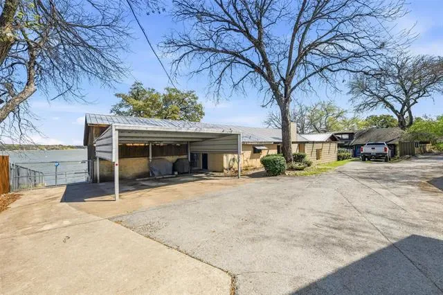 Rarely offered on the shores of Lake Worth, this private waterfront retreat offers the lake lifestyle buyers are searching for. Set on a large lot surrounded by natural beauty, the home is designed to capture stunning water views while providing comfortable living and great entertaining space. The home features 3 bedrooms, 2.5 baths, two living areas, formal dining, and an open kitchen with island and granite countertops. The large primary suite offers dual walk-in closets and a spacious bath with a huge walk-in shower. A wall of windows across the back fills the home with natural light and frames beautiful lake views. Step outside to the full-length composite porch that spans the back of the home—perfect for relaxing or entertaining with minimal maintenance. For lake lovers, the property includes a personal boat ramp and a rare enclosed double boat house with lifts and a floating boarding dock. Composite decking and built-in speakers make enjoying time on the water easy and low maintenance. The large lot extends up the hill for additional parking and includes an attached double carport plus a detached two-story two-car garage with a double steel carport. With good water depth for boating and jet skis, and located minutes from highways, Lockheed Martin, and about 15 minutes from downtown Fort Worth, this property offers both convenience and a true lake lifestyle. Waterfront opportunities like this on Lake Worth are rare—schedule your private showing today.
