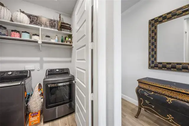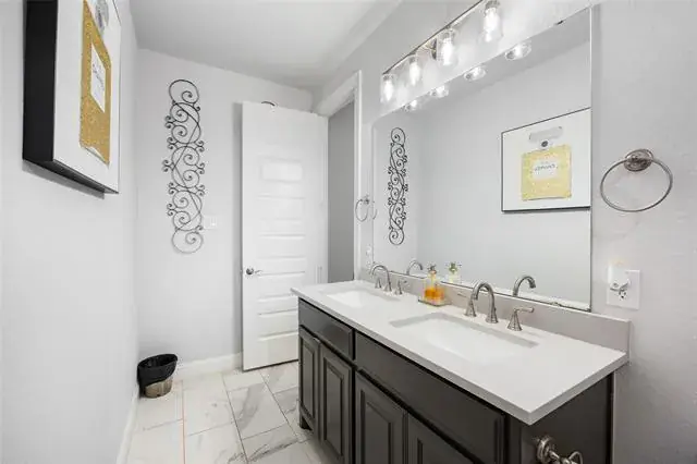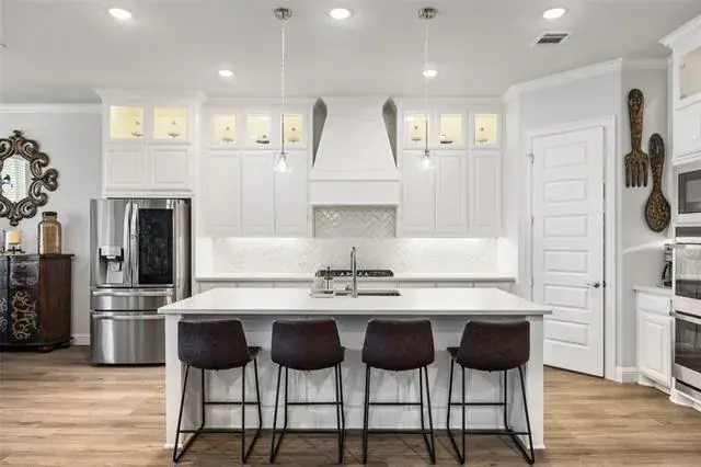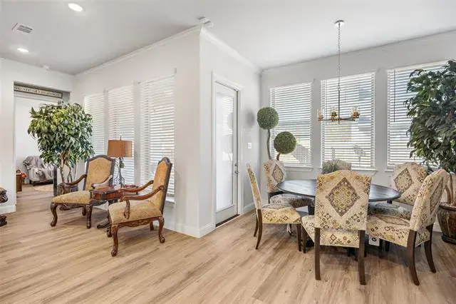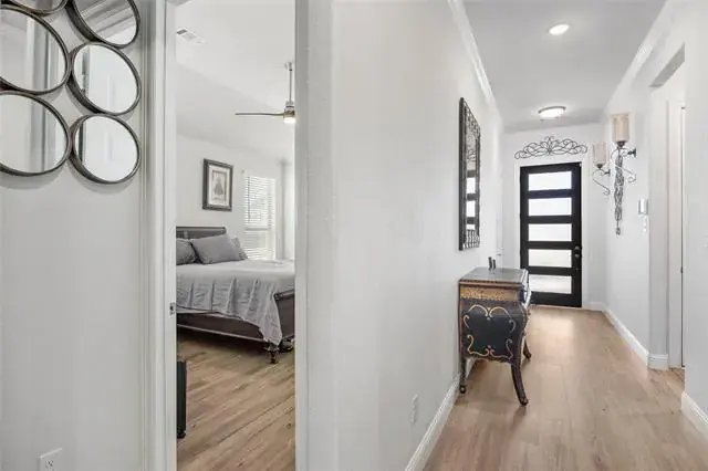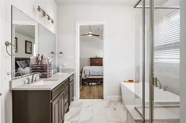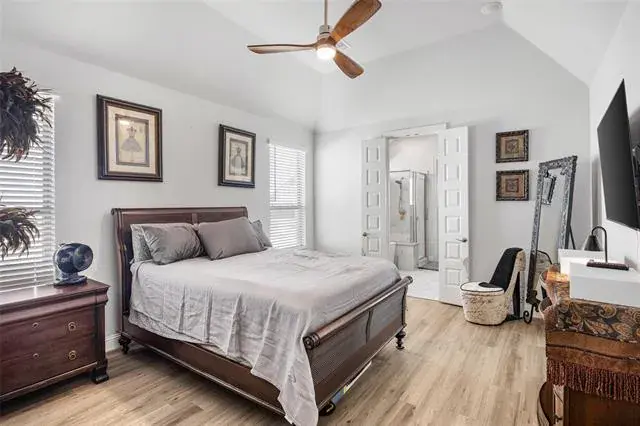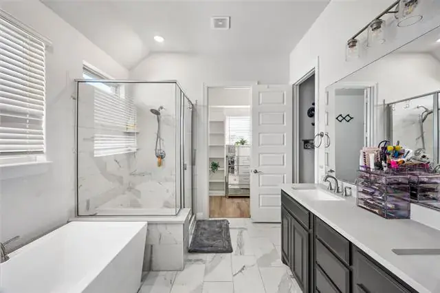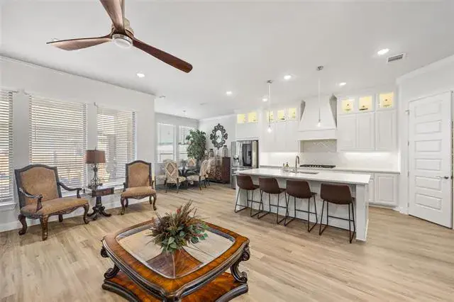 The primary suite offers a walk-in closet and private bath with dual sinks and a soaking tub. Three additional bedrooms provide flexibility for guests, a home office, or hobbies. Luxury vinyl plank flooring, neutral tones, and over $80K in total upgrades create a move-in-ready experience.