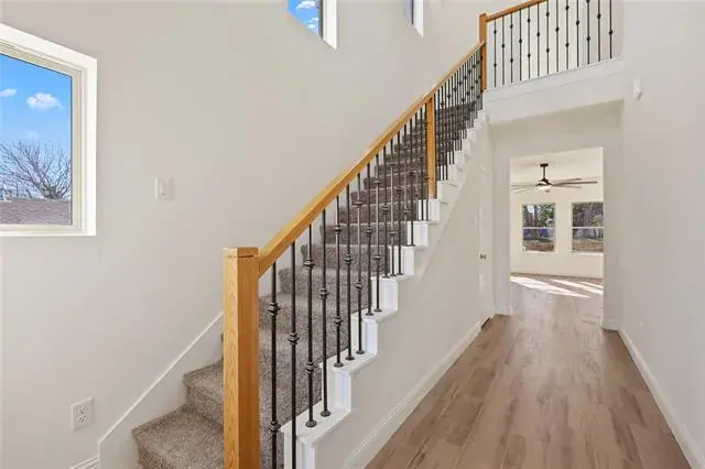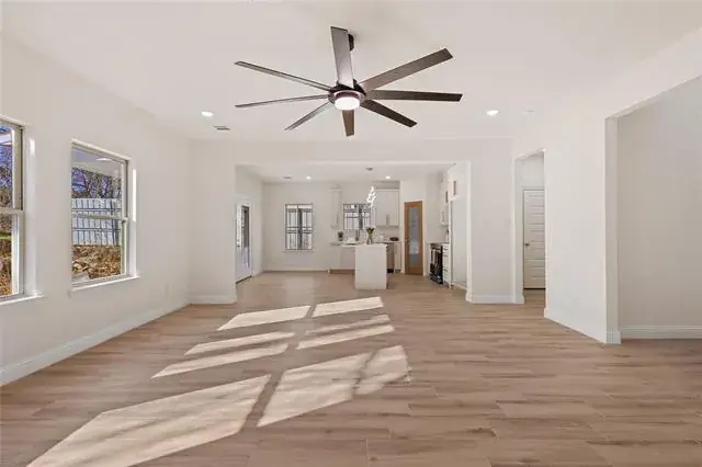 Inside, you’re welcomed by a spacious living room that flows seamlessly into the heart of the home—perfect for family time and entertaining. The beautiful kitchen is a true standout, featuring quartz countertops, soft-close shaker cabinets, stainless steel appliances, and a generous island ideal for casual dining, homework time, or hosting guests.