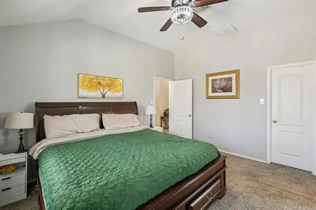 Retreat to the spacious primary suite featuring two closets and a luxurious bath with a large jetted tub, separate shower, and plenty of room to unwind. Ceiling fans throughout the home provide year-round comfort.