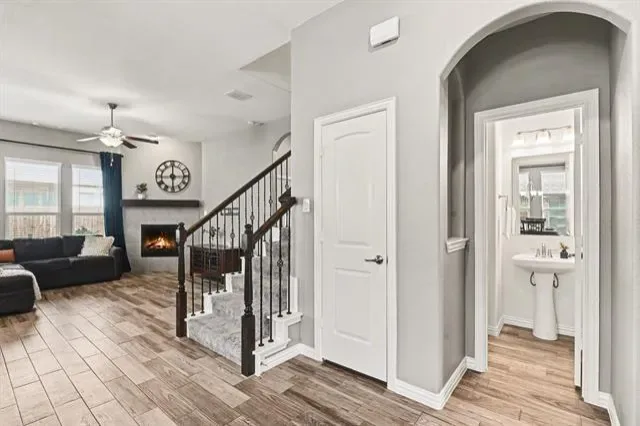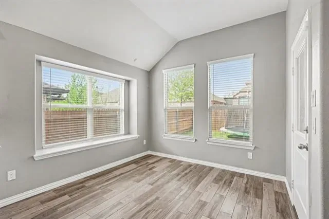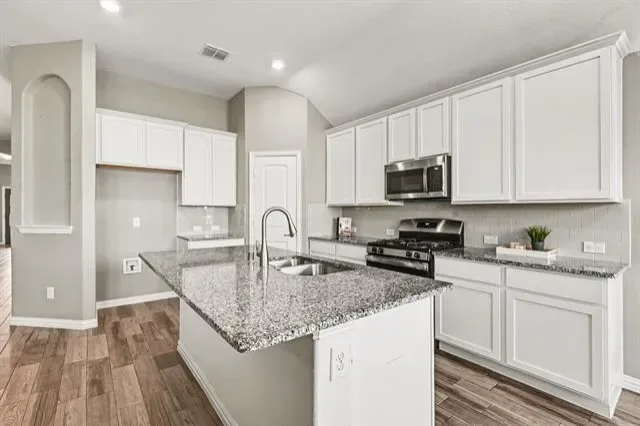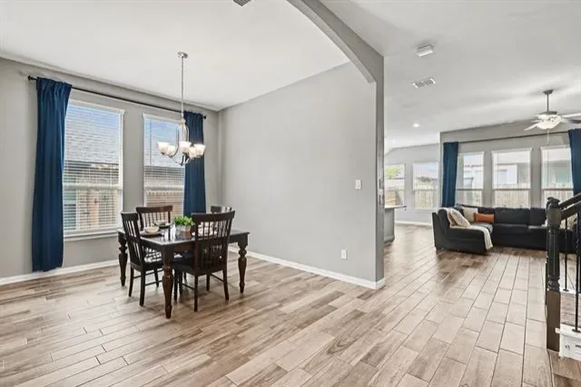 Built in 2020 and exceptionally well maintained, this impressive home at 7225 Navoti Trl delivers style, space, and thoughtful design in the Las Ventanas community of Fort Worth. A welcoming foyer opens to an airy layout highlighted by arched entryways, wood-look ceramic tile throughout the main living areas, and a cozy fireplace that anchors the living room. A dedicated office with built-in shelving and cabinetry adds a refined, functional touch. The kitchen features granite countertops, a breakfast bar, and an easy flow into both the living space and separate formal dining room. All bedrooms are conveniently located on the main level, including a spacious primary suite with an ensuite bath offering dual sinks, a soaking tub, separate shower, and a generous closet. A well sized laundry room and additional half bath on the main level enhance everyday convenience. Upstairs, enjoy a media room with a half bathroom, perfect for entertaining or a private retreat. Out back, the fenced backyard with a covered porch is ideal for relaxing or hosting guests. Residents of Las Ventanas enjoy amenities such as a community pool, park, and playground, while nearby access to Interstate 35W and US Highway 287 makes commuting a breeze. Shopping, dining, and everyday essentials are just minutes away in this growing North Fort Worth area. Don’t miss your chance to own this beautifully maintained home. Schedule your private tour today.