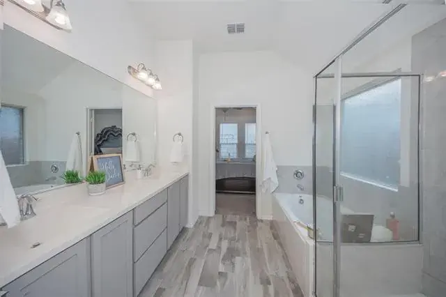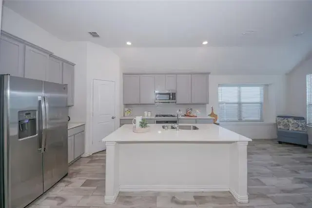 a casual dining option, while the formal dining room is perfect for special occasions. Need an office, 4th bedroom or playroom? The flexible front room is ready to become whatever your life needs next. The private primary retreat pampers with a soaking tub, separate shower, dual vanities, and a closet you can actually live with. Step outside to a covered patio and pet-friendly yard made for grilling and golden-hour sunsets. You’re minutes to Alliance Town Center, Presidio Towne Crossing, and the Stockyards, with quick access to highways for an easy commute. Zoned to Chisholm Ridge Elementary, Highland Middle, and Saginaw High in EMS-ISD. This home does have some baseboard damage from dog chewing and will need paint &' Carpet replaced, BUT IT IS A GREAT HOME. Pictures of dining room, office, kitchenette are virtually staged. AGENTS See private remarks