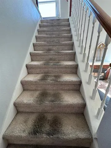 This is a property….calling on investors. There is a break in the plumbing line that connects to sprinkler system. Toilet and Master Shower sometimes is over worked and will leak through the ceiling…..Seal probably needs to be fixed. Cute home that was updated with newer appliances and fixtures. Home needs new carpet. Home has nice paint job. All bedrooms are upstairs