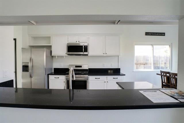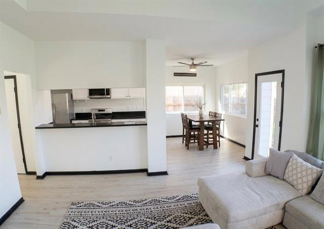Welcome to a lovely charming home that has an abundance of natural light throughout the whole house! Featuring tall ceilings, three spacious bedrooms, two full modern bathrooms and one half bath in the downstairs for guests. Walk on the waterproof vinyl luxury floor throughout the home, no carpet here! Show off the cathedral ceiling to your visitors! Seat on the kitchen island and entertain your guest with the spacious open layout modern kitchen. The formal dinning area is spacious to fit a nice dinning room set. This home has new granite counter tops in the top gourmet kitchen and in the bathrooms, new energy efficient roof, hvac, ac unit and a sprinkler system. Relax in the immaculate backyard, enjoy your own oasis privately fenced. In addition to the two car garage there is an extra storage shed. This home is move in ready! All stainless appliances including washer and dryer convey with the purchase. Highly motivated seller! offering incentives to buy down points or cover closing costs with asking price offer!