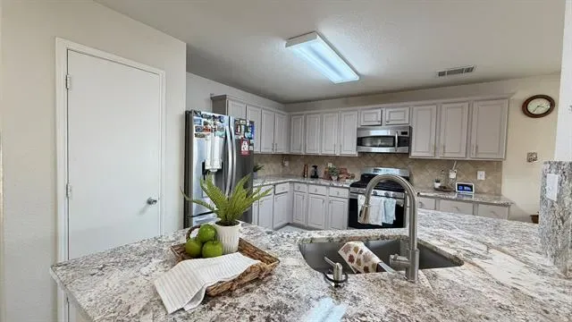 Beautiful brick 4-bedroom, 2.5-bath home in the sought-after Liberty Crossing area of north Fort Worth. This light and bright floor plan offers a spacious living area with fireplace, formal dining, and an open kitchen featuring stainless steel appliances, gas range, abundant cabinetry, and a breakfast nook. The first-floor primary suite includes dual sinks, jetted tub, separate shower, and walk-in closet. Upstairs bonus room provides flexible space for a game room, media room, or second living area. Recent updates include roof, HVAC system, carpet, plus hardwood floors and fresh paint through much of the home. Conveniently located near the community pool and just minutes from shopping and dining. Costco Wholesale, Alliance Town Center, and Tanger Outlets Fort Worth.