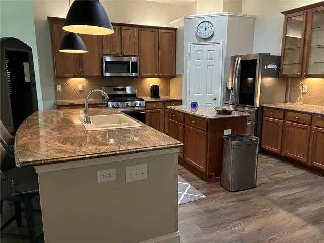 Come see this beautiful 4 bedroom, 2 bath, 2 living room, 2 dining room home. Great open floor plan. Large open living room with fireplace. The AC and the roof have been updated. The entry hall, kitchen, and living room floors were replaced with luxury vinyl plank flooring in 2025. The back yard has a large covered patio perfect for those weekend get togethers. The neighborhood has a community pool, walking trails and park with easy access to Highway 287, shopping and dining.