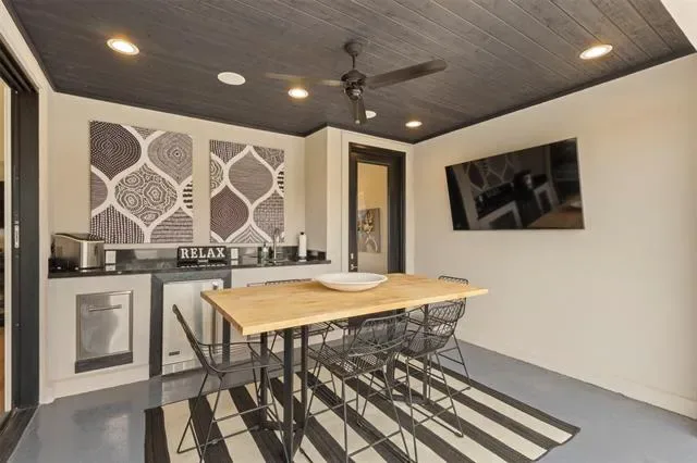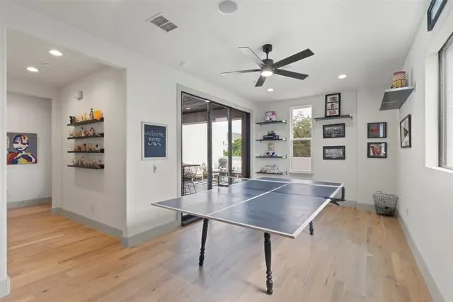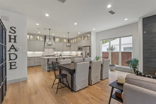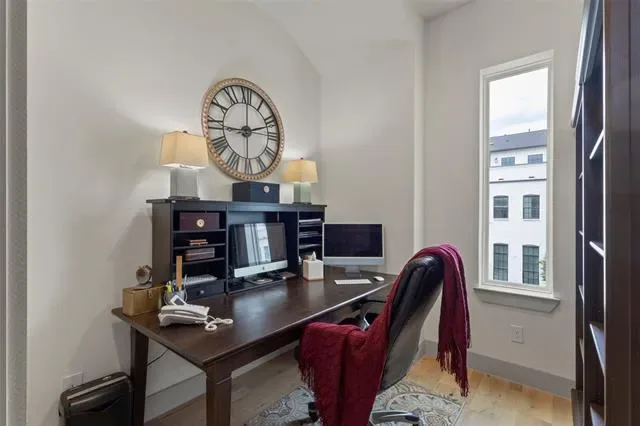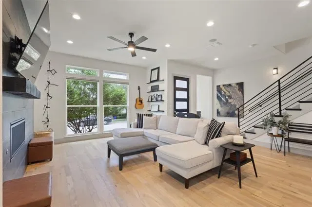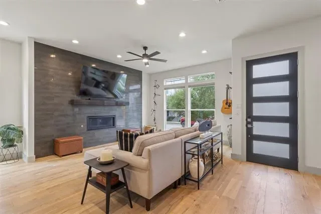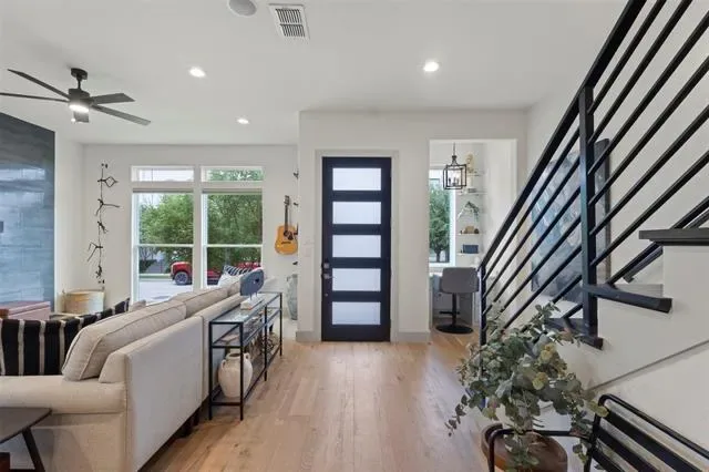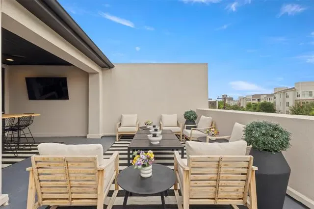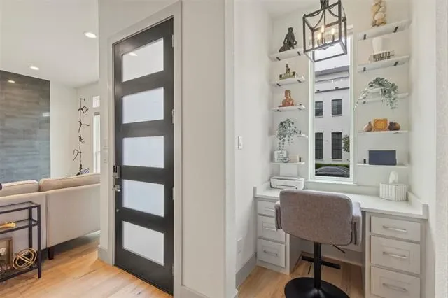 Welcome to this beautifully designed townhome featuring a private gated entry, offering a refined blend of comfort and modern elegance. This thoughtfully crafted residence showcases an open-concept layout filled with natural light, soaring ceilings, and upscale finishes throughout. The main living area flows seamlessly into a stylish kitchen, perfect for both everyday living and entertaining. A dedicated office provides an ideal space for remote work or creative pursuits, while the spacious game room offers versatility for relaxation or hosting guests. On the third floor, enjoy a private balcony—an inviting retreat to unwind and take in sweeping views of the Fort Worth skyline, where city lights create a stunning backdrop in the evenings. Each level is designed with both functionality and sophistication in mind, creating a well-balanced living experience. Conveniently located near shopping, dining, and cultural attractions, this home offers the perfect blend of accessibility and retreat—an exceptional opportunity to enjoy contemporary townhome living in a vibrant Fort Worth location.