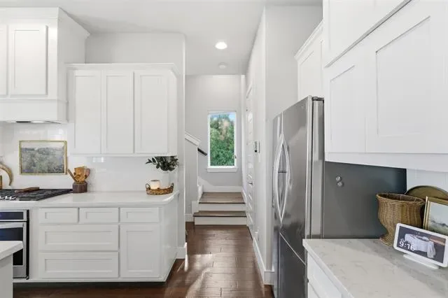 The third level is dedicated to the spacious primary suite, complete with new flooring, a spa-inspired bathroom, and a generous walk-in closet. An additional bedroom on this level offers flexibility as a home office, den, or nursery.