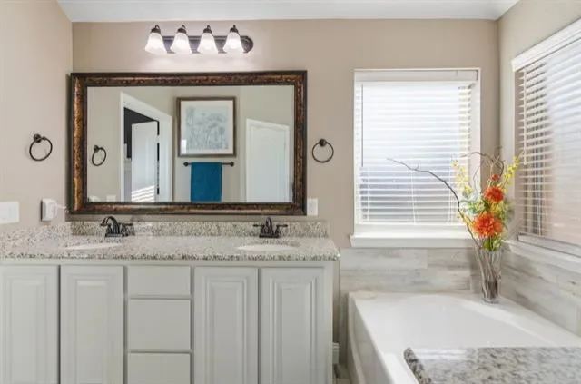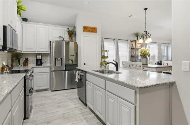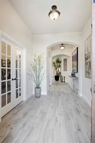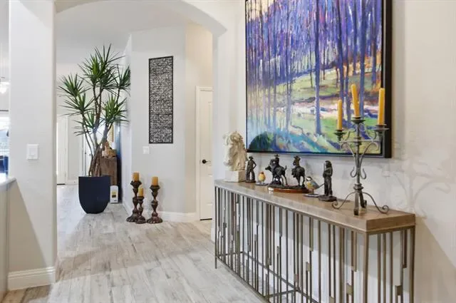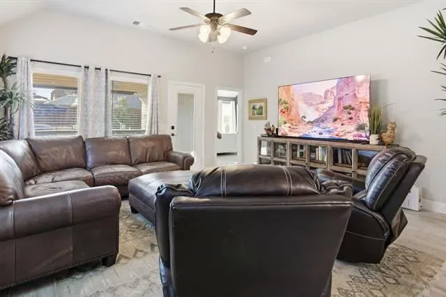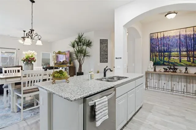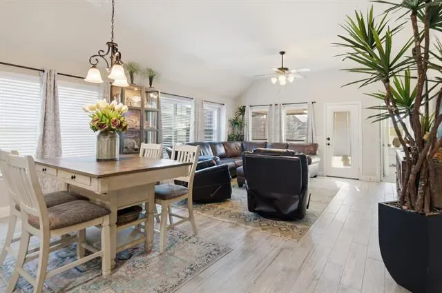 Live large in this striking single-story, brick & stone home nestled in the back of the master planned Live Oak Creek subdivision. Current owners have tastefully elevated the wow factor! Gorgeous trees and thoughtful landscaping enhanced by handsome Austin stone border magnify curb appeal and invite you in to explore more noteworthy additions inside. Classy finishes throughout the home starting with the extensive wood tile flooring in all common areas, an oversized office framed with french doors and sporting warm, quality patterned carpet and accent window ledges, and soft neutral tones with arched entries lend an elogant, sophisticated feel. Sunshine pours through the abundant windows in the living and breakfast rooms flooding the entire shared space with rich warmth. All stainless kitchen appliances new in the last 2 years. Granite countertops, undermount sink and Crisp, white, 42in cabinets. Sizable primary bedroom boasts more gorgeous patterned carpet, overlooks a lush backyard and accommodates oversized bedroom furnishings. Exterior finishes include a covered patio with additional deck for hot tub or dining furniture, full gutters and sprinklers, and a stained privacy fence with metal posts. Full list of upgrades are available in Transaction Desk.