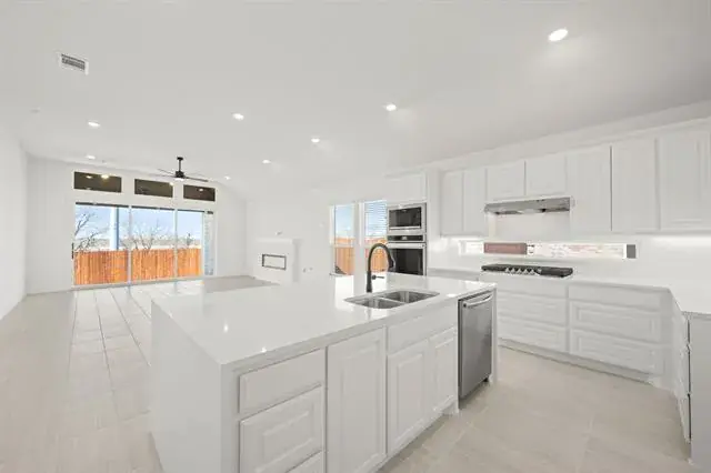 MLS# 20741153 – Built by First Texas Homes – Ready Now! ~ Welcome to this charming 3-bedroom, 3-bath home that perfectly balances comfort and style. As you enter, you’ll be greeted by a spacious great room that seamlessly opens to the kitchen, creating an inviting atmosphere for gatherings and everyday living. The great room features large windows that fill the space with natural light, making it a perfect spot for relaxation or entertaining. The modern kitchen has sleek appliances, ample cabinetry, and a convenient island that doubles as a breakfast bar. The primary suite is a tranquil retreat with an ensuite bathroom that boasts dual vanities and a walk-in shower. Two additional bedrooms offer flexibility for family, guests, or a home office, with a well-appointed bathroom nearby for convenience .Step outside to discover a cozy backyard, perfect for outdoor dining or a quiet morning coffee. With its thoughtful layout and welcoming design, this home is ideal for those seeking a blend of functionality and modern living. Don’t miss your chance to make it yours!