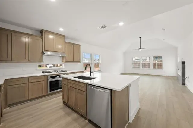 MLS# 21077175 – Built by First Texas Homes – Ready Now! ~ Discover this spacious 5-bedroom, 3-bath home offering 2,554 sq ft of comfortable living. The main level features a convenient second bedroom with a full bathroom nearby, perfect for guests or multi-generational living. Enjoy high ceilings and an open floor plan that create a bright, inviting atmosphere ideal for entertaining. Step outside to a covered patio, perfect for outdoor gatherings. A two-car garage provides ample storage. Don’t miss your chance to own this exceptional home—schedule your tour today. Tyler F – B , Llano Springs , Fort Worth, TX