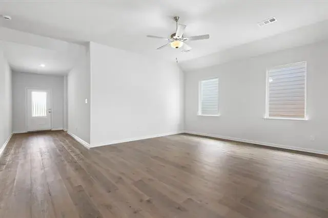 This charming single-story home in Fort Worth offers plenty of space and a convenient location to match. Situated near the entrance of the community and just down the street from the neighborhood park and splash pad, this four-bedroom home features two full baths, a spacious family room, a chef-ready kitchen, and a private master suite with an en-suite bathroom. The open-concept layout is thoughtfully designed to create the perfect setting for entertaining and everyday living. Additionally, this home comes equipped with a host of impressive upgrades at no extra cost, including energy-efficient Whirlpool® appliances, granite countertops, designer wood cabinetry with crown molding, a Wi-Fi-enabled garage door opener, and more