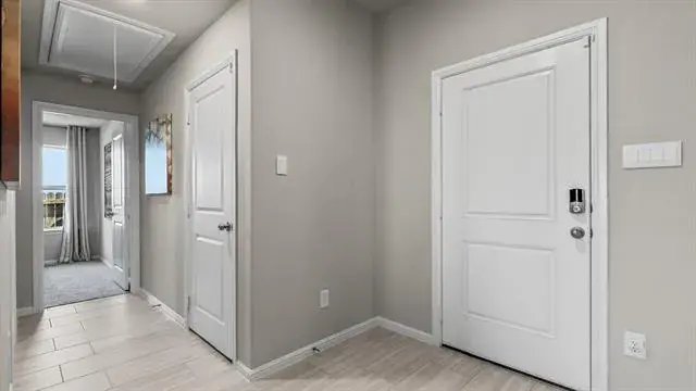 D.R. Horton America’s Builder since 2002 is excited to serve as your new home builder in Lonestar at Liberty Trails, a fabulous unique master planned community in Justin and Northwest ISD! The beautiful Huntsville floor plan Elevation-C, with a estimated Spring completion. This is a single-story home that offers 4 bedrooms, 2 bathrooms and approx 1,778 sq. ft. of living space. As you enter the foyer, you’ll pass two secondary bedrooms with the spacious secondary bathroom shared between them. A short hallway off the foyer leads to the utility room and the fourth secondary bedroom. The foyer leads to a grand, open concept living room, kitchen, and dining room. The kitchen features stainless steel appliances with gas cooking range, granite countertops, a corner walk-in pantry, and a large kitchen island overlooking the living room. A large covered patio is located off the dining room, perfect for entertaining. The private main bedroom suite is located off the dining room and features a huge walk-in closet, separate water closet and a large walk-in shower with ceramic tile surround. Additional features include: tankless water heater; Ceramic tile flooring at Entry, Hallways (per plan), Kitchen-Breakfast, Utility and Bathrooms; and, full yard sod, landscaping and irrigation. The Huntsville includes our HOME IS CONNECTED base package. Using one central hub that talks to all the devices in your home, you can control the lights, thermostat and locks, all from your cellular device. Future Community Amenities to include: Club House, Dog Park, Fishing Pond, Pickleball, Playground, Pool, Splash Pad, Walking-Nature Trails and Sand Volleyball. Situated conveniently near Highway 114 and Highway 287, Lonestar at Liberty Trails provides access to key roads, making it ideal for commuting and exploring the surrounding areas.