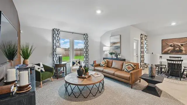 D.R. Horton America''s Builder since 2002 is excited to serve as your new home builder in Lonestar at Liberty Trails, a fabulous unique master planned community in Justin and Northwest ISD! The Texas Cali Floorplan Elevation-B, with an estimated Spring completion. This is a single-story home offering 4 bedrooms, 2 bathrooms, and a 2-car garage. The open layout includes a family room, breakfast nook, and kitchen, featuring a large island, granite countertops, stainless steel appliances, gas range, built-in microwave, and a corner pantry. The primary suite includes a quartz-topped vanity, a 5-foot oversized shower, and a large walk-in closet. Luxury vinyl flooring enhances the entry, hallways, and wet areas, and the home includes a Home Is Connected® Smart Home Technology package. Outside, a covered back patio and fenced backyard with sod and sprinklers provide the perfect outdoor retreat. Additional features include a gas tankless water heater for energy efficiency. Future Community Amenities to include: Club House, Dog Park, Fishing Pond, Pickleball, Playground, Pool, Splash Pad, Walking-Nature Trails and Sand Volleyball. Situated conveniently near Highway 114 and Highway 287, Lonestar at Liberty Trails provides access to key roads, making it ideal for commuting and exploring the surrounding areas.
