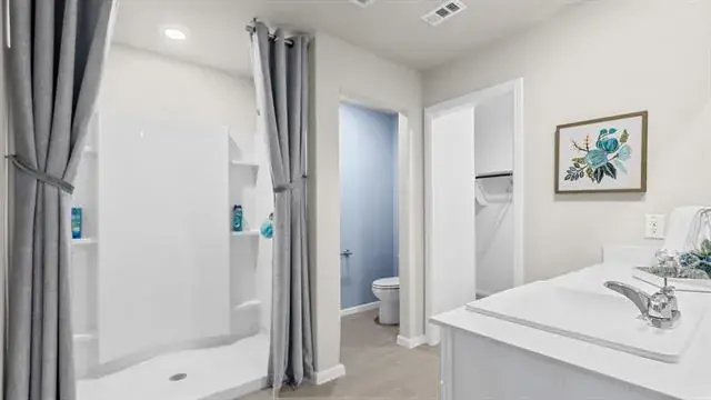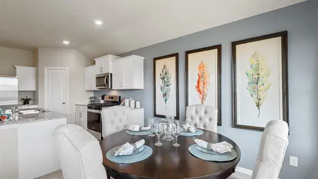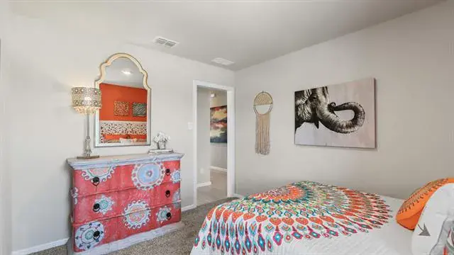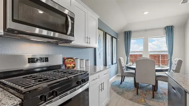 D.R. Horton America’s Builder since 2002 is excited to serve as your new home builder in Lonestar at Liberty Trails, a fabulous unique master planned community in Justin and Northwest ISD! With a quick estimated Winter completion, the Bellvue Elevation-C is a single story home that offers 3 bedrooms, 2 bathrooms and approx 1,450 sq. ft. of living space. As you enter the long foyer, you’ll pass both secondary bedrooms, as well as the secondary bathroom. The secondary bedrooms both feature large walk in closets. Next you’ll enter the open concept kitchen which features stainless steel appliances with gas cooking range, granite countertops, and a corner walk-in pantry. The large kitchen island overlooks the living room which has plenty of natural lighting. The dining room is next to the kitchen and leads out to the large covered patio. The private main bedroom suite is located off the living room and features a huge walk-in closet and large walk-in shower with luxury vinyl flooring surround. Additional features include: tankless water heater; Ceramic tile flooring at Entry, Hallways (per plan), Kitchen-Breakfast, Utility and Bathrooms; and, full yard sod, landscaping and irrigation. The Bellvue includes our HOME IS CONNECTED base package. Using one central hub that talks to all the devices in your home, you can control the lights, thermostat and locks, all from your cellular device. Future Community Amenities to include: Club House, Dog Park, Fishing Pond, Pickleball, Playground, Pool, Splash Pad, Walking-Nature Trails and Sand Volleyball. Situated conveniently near Highway 114 and Highway 287, Lonestar at Liberty Trails provides access to key roads, making it ideal for commuting and exploring the surrounding areas.