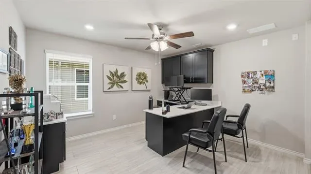 D.R. Horton America’s Builder since 2002 is excited to serve as your new home builder in Lonestar at Liberty Trails, a fabulous unique master planned community in Justin and Northwest ISD! The Lakeway floorplan elevation-B, with an estimated Summer completion, offers 2,044 square feet of living space spread across 4 bedrooms, 3 bathrooms and a study. As you enter the spacious foyer you’ll see the open study, a guest bedroom, and second full bath at the front of the home. Passing through the foyer, you’ll find yourself in the grand combination dining room, kitchen, & living room. The Lakeway kitchen offers granite countertops, stainless steel appliances, a corner walk-in pantry and a large kitchen island with a deep, single bowl sink that faces the living room. The living room is wide open and perfect for entertainment. Located privately off the dining room are the remaining secondary bedrooms and a third full bath. The private main bedroom is located at the back of the home and features a spacious en-suite bathroom, complete with double vanity sinks, walk-in closet, and spacious walk-in shower. Additional features include luxury vinyl flooring at entry, downstairs, halls, living room, kitchen, and dining-breakfast area, in all bathrooms and utility room, pre-plumb for water softener loop, faux wood window blinds, and full yard landscaping and irrigation. This home includes the AMERICA’S SMART HOME base package. Using one central hub that talks to all the devices in your home, you can control the lights, thermostat and locks, all from your cellular device. Future Community Amenities to include Club House, Dog Park, Fishing Pond, Pickleball, Playground, Pool, Splash Pad, Walking-Nature Trails and Sand Volleyball. Situated conveniently near Highway 114 and Highway 287, Lonestar at Liberty Trails provides easy access to key roads, making it ideal for commuting and exploring the surrounding areas.