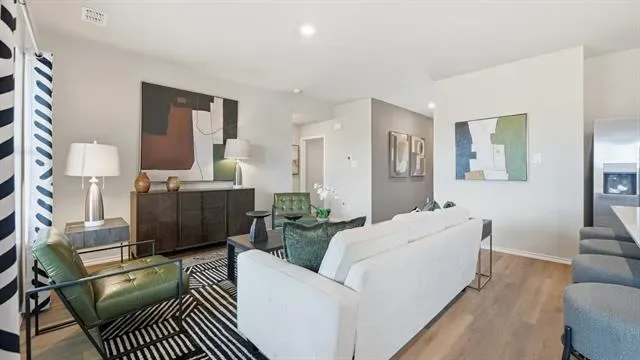 D.R. Horton America''s Builder since 2002 is excited to serve as your new home builder in Lonestar at Liberty Trails, a fabulous unique master planned community in Justin and Northwest ISD! The single-story Bellvue Floorplan, Elevation W, with an estimated Summer completion, offers 3 bedrooms, 2 bathrooms, and a 2-car garage, thoughtfully designed with an open-concept layout that maximizes both comfort and functionality. The family room serves as the heart of the home and flows seamlessly into the dining nook and contemporary kitchen, creating a warm and inviting space ideal for everyday living and entertaining. The well-appointed kitchen features quartz countertops, 36” painted cabinets, stainless steel Frigidaire appliances, a electric range, stainless steel sink, center island, and a walk-in pantry for convenient storage. The private primary suite includes an en-suite bath with dual quartz vanities, a 5-foot oversized shower, and a walk-in closet located just off the bathroom. Two secondary bedrooms and a full bathroom with a quartz vanity top provide flexible space for family members, guests, or a home office. Luxury vinyl plank flooring enhances the main living areas and wet zones for durability and easy maintenance. Built with energy-efficient construction and equipped with America’s Smart Home Technology. Future Community Amenities to include Club House, Dog Park, Fishing Pond, Pickleball, Playground, Pool, Splash Pad, Walking-Nature Trails and Sand Volleyball. Situated conveniently near Highway 114 and Highway 287, Lonestar at Liberty Trails provides convenient access to key roads, making it ideal for commuting and exploring the surrounding areas.