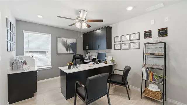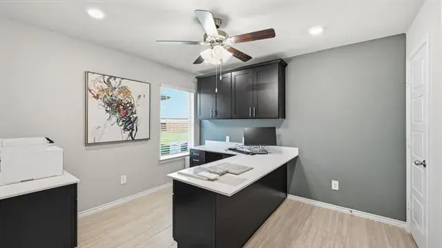 D.R. Horton America’s Builder since 2002 is excited to serve as your new home builder in Lonestar at Liberty Trails, a fabulous unique master planned community in Justin and Northwest ISD! The Lakeway floorplan offers 2,044 square feet of living space spread across 4 bedrooms, 3 bathrooms and a study, with a quick estimated Winter completion. As you enter the spacious foyer you’ll see the open study, a guest bedroom, and second full bath at the front of the home. Passing through the foyer, you’ll find yourself in the grand combination dining room, kitchen, & living room. The Lakeway kitchen offers granite countertops, stainless steel appliances, a corner walk-in pantry and a large kitchen island with a deep, single bowl sink that faces the living room. The living room is wide open and perfect for entertainment. Located privately off the dining room are the remaining secondary bedrooms and a third full bath. The private main bedroom is located at the back of the home and features a spacious en-suite bathroom, complete with double vanity sinks, walk-in closet, and spacious walk-in shower with white subway tile surround. Additional features include luxury vinyl flooring at entry, downstairs, halls, living room, kitchen, and dining-breakfast area, in all bathrooms and utility room, pre-plumb for water softener loop, faux wood window blinds, and full yard landscaping and irrigation. This home includes the HOME IS CONNECTED base package. Using one central hub that talks to all the devices in your home, you can control the lights, thermostat and locks, all from your cellular device. Future Community Amenities to include Club House, Dog Park, Fishing Pond, Pickleball, Playground, Pool, Splash Pad, Walking-Nature Trails and Sand Volleyball. Situated conveniently near Highway 114 and Highway 287, Lonestar at Liberty Trails provides easy access to key roads, making it ideal for commuting and exploring the surrounding areas.