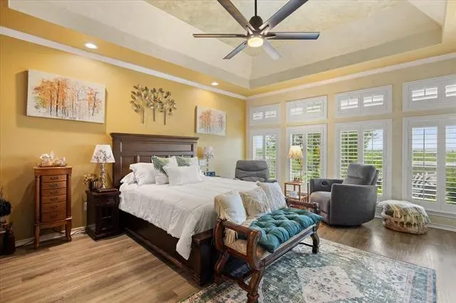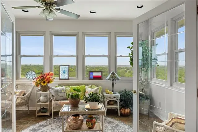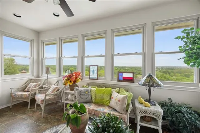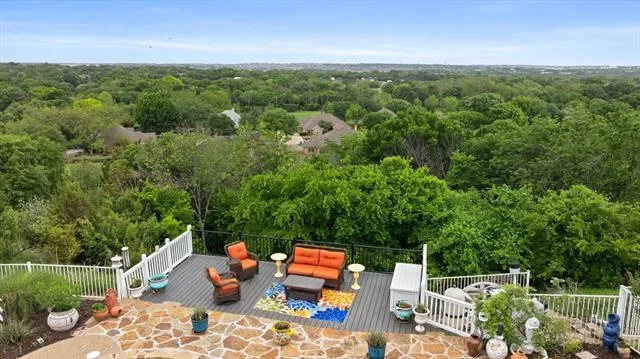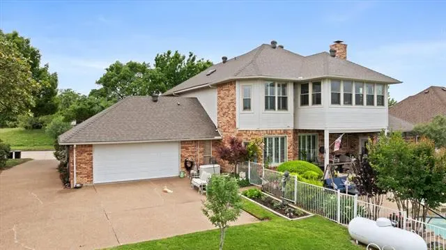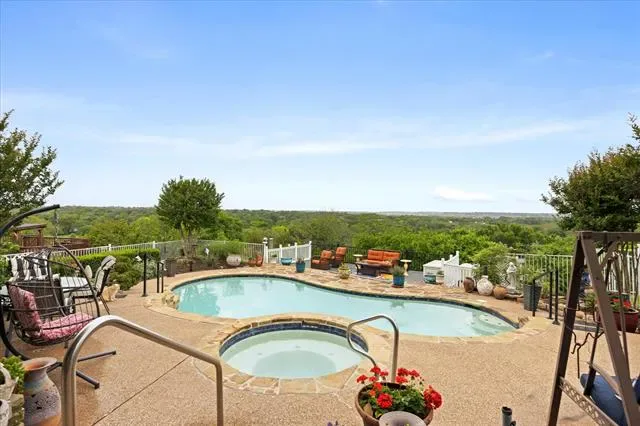 Spectacular panoramic views of the Fort Worth skyline! This 3 bedroom, 3 full bathroom, 2 story home has it all with beautiful updates and awesome upgrades throughout. The primary bedroom is on the first floor and there are 2 additional bedrooms upstairs along with the 2nd living area. This home features a spacious living area, 2 dining areas, an office and a full guest bath on the first floor. The spacious kitchen has marble countertops, a pantry, an island and all kitchen appliances were replaced in November 2024. The laundry room has an additional oven, a warming drawer and room for a second refrigerator. The beautifully landscaped yard (with sprinkler system) has won Yard of the Month numerous times. Enjoy the wide open vista views from your swimming pool or hot tub in the private backyard. The pool equipment and flagstone between the pool and deck were replaced in May 2024. The fireplace has a pellet stove that is both attractive and efficient. Updates include luxury vinyl floors downstairs, new windows downstairs (eight years ago) and upstairs (two years ago), and new hot water heaters in June 2024. Nice upgrades include a whole-home generator installed in 2023 with surge protectors, remote control shades on the patio, plantation shutters throughout the house, a beautiful crystal chandelier in the entryway, and ceiling fans throughout. This home is located in the highly desirable neighborhood of Lost Creek conveniently located between Fort Worth and Aledo and not far from Weatherford with breathtaking views you need to see for yourself!